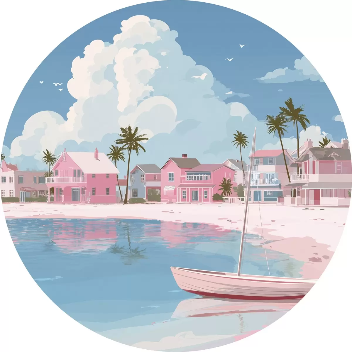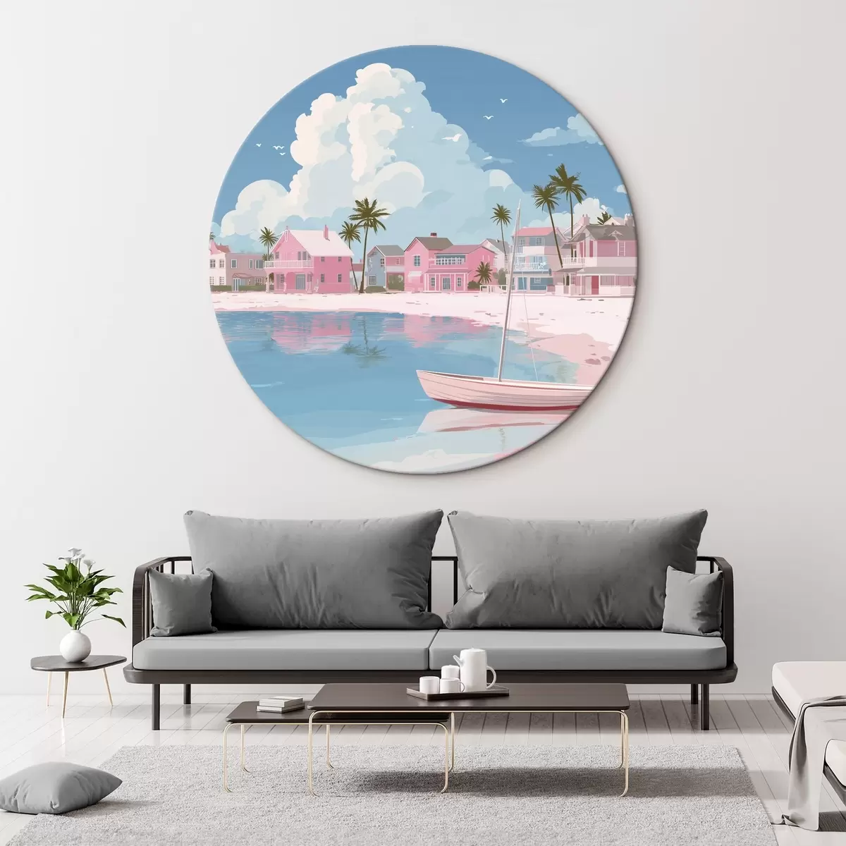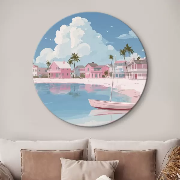 Apaļas gleznas Krāsaina rozā vasaras pludmale r44985