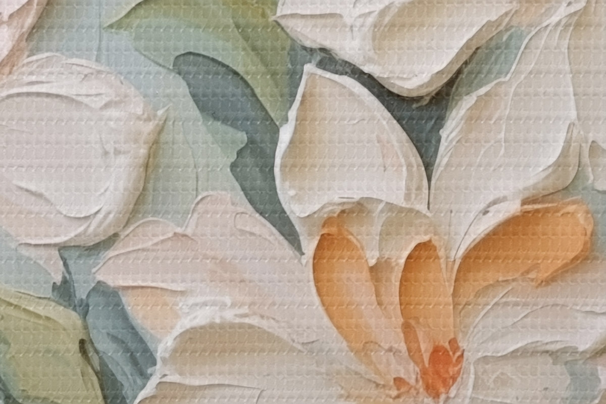 Smalkais diegu pinums uz šī audekla atgādina profesionālu mākslinieku audeklu virsmu.