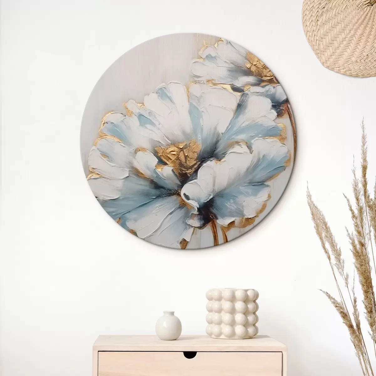 Apaļas gleznas Zili un balti ziedi r44989
