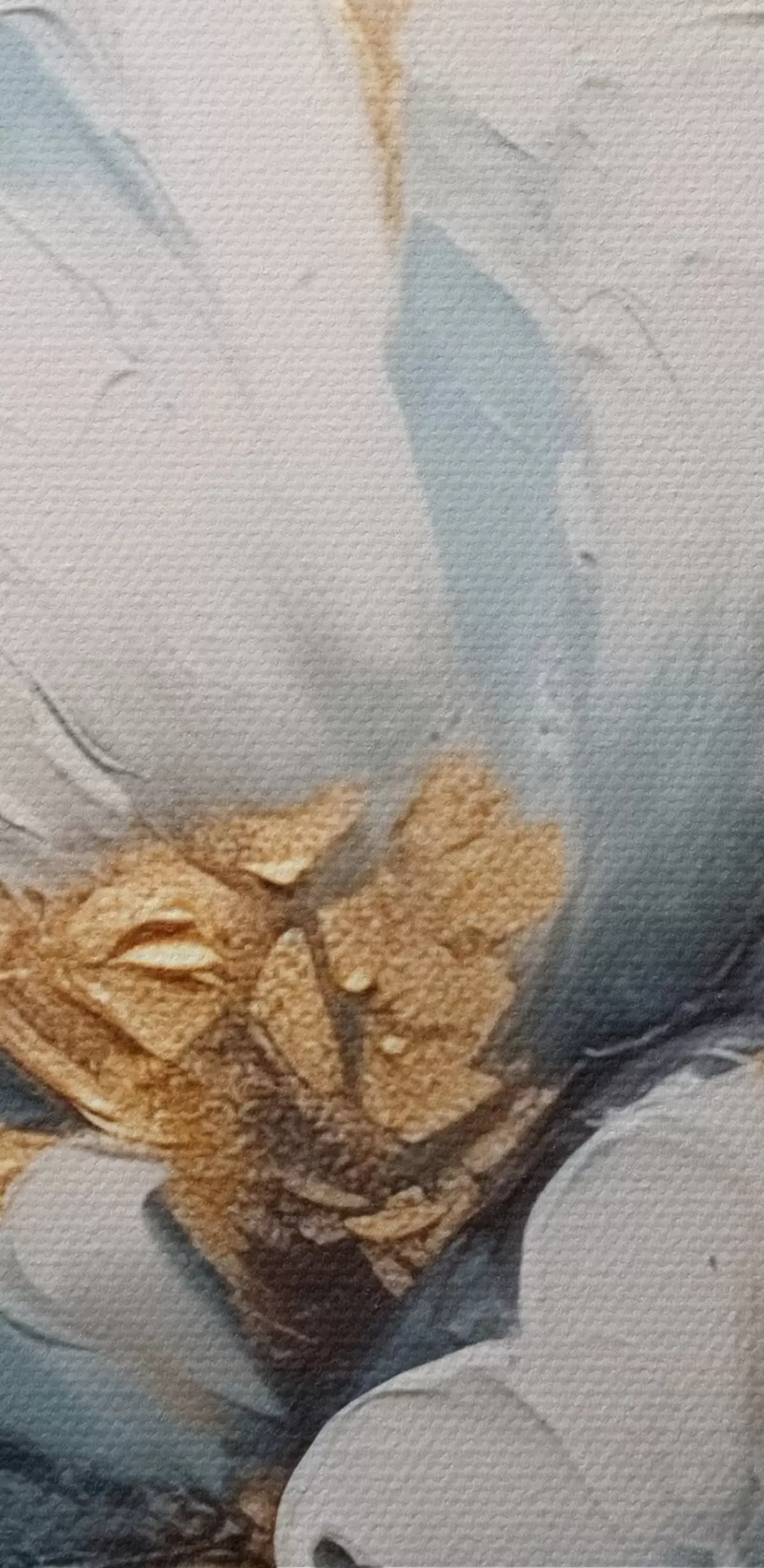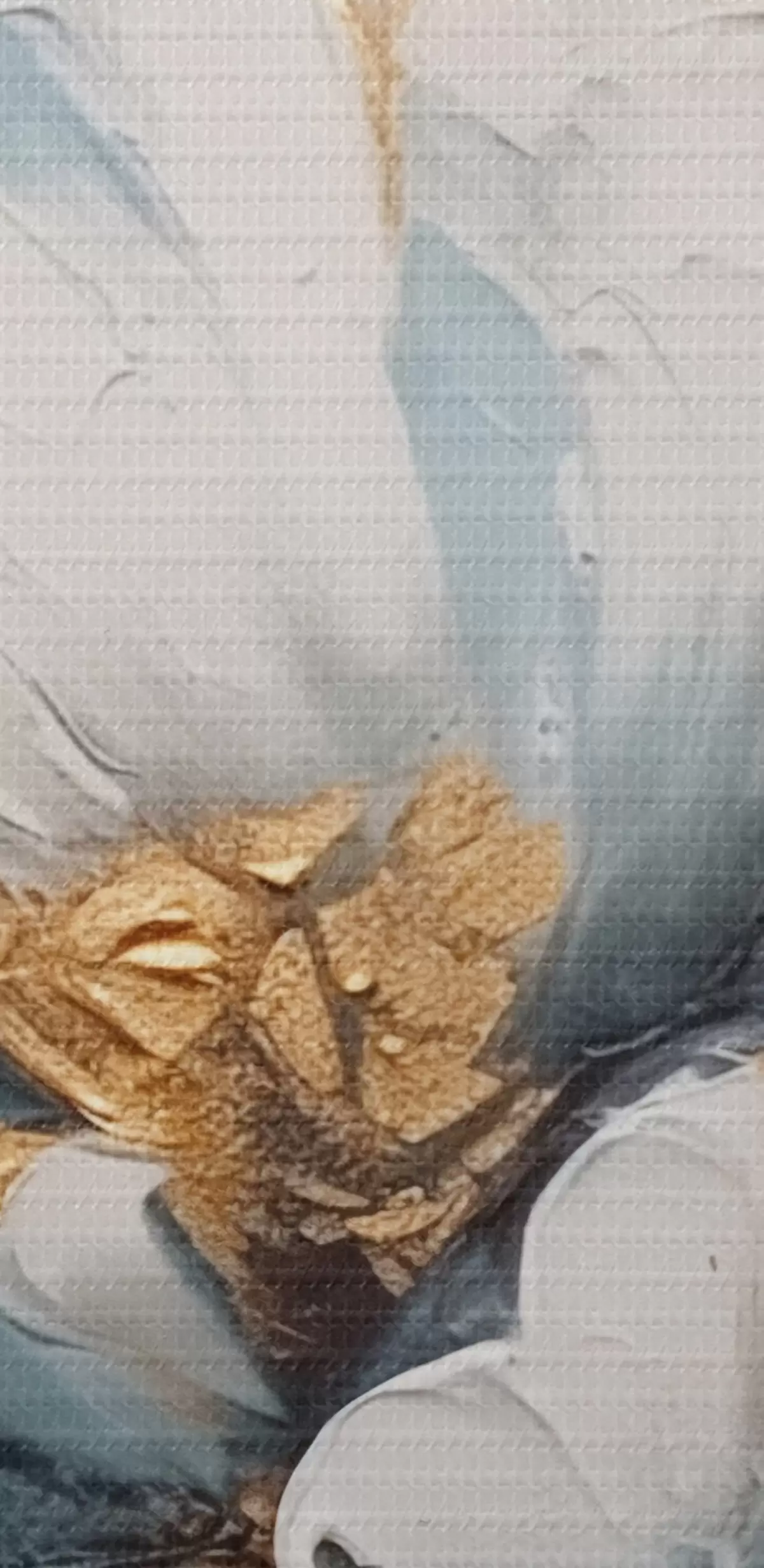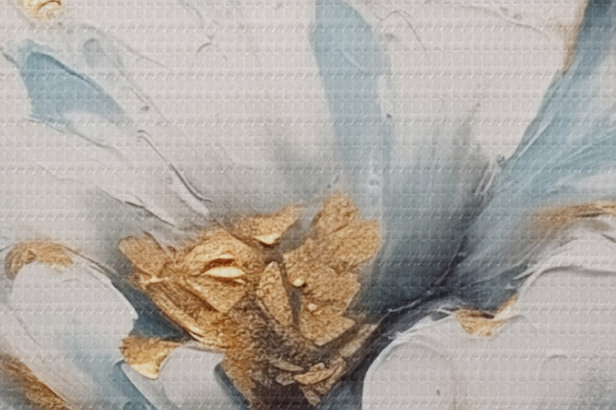Smalkais diegu pinums uz šī audekla atgādina profesionālu mākslinieku audeklu virsmu.