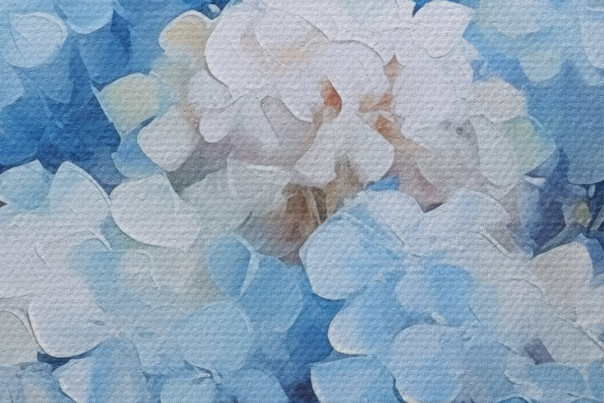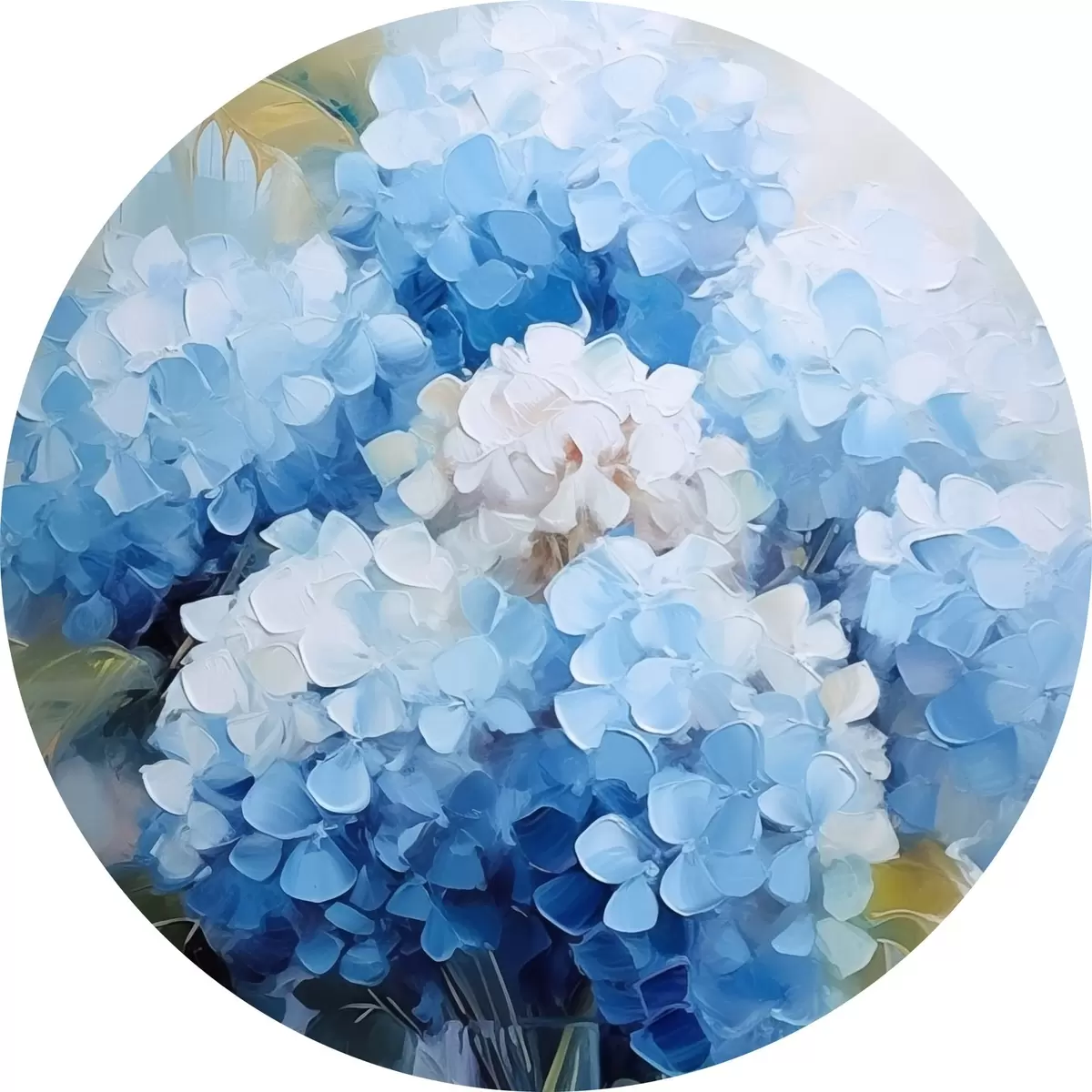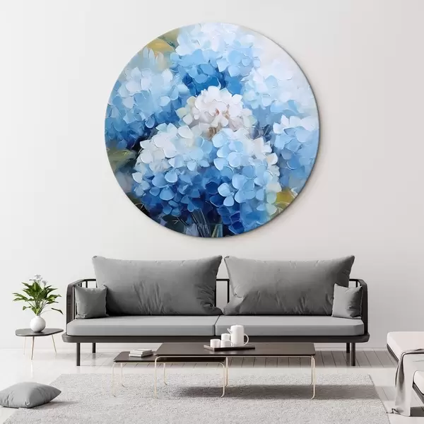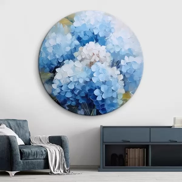 Apaļas gleznas Zilu hortenziju pušķis stikla vāzē r44998