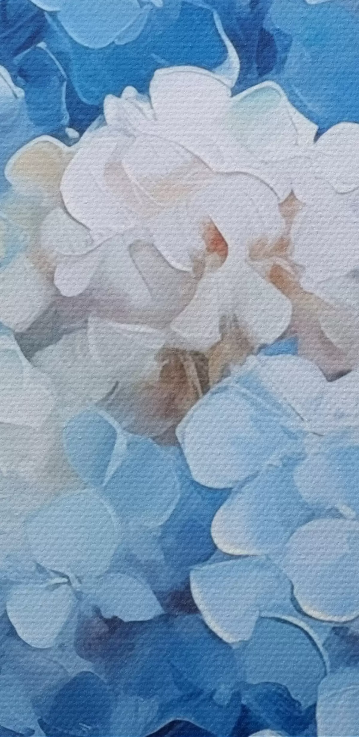 Attēls Zilu hortenziju pušķis stikla vāzē Nr r44998