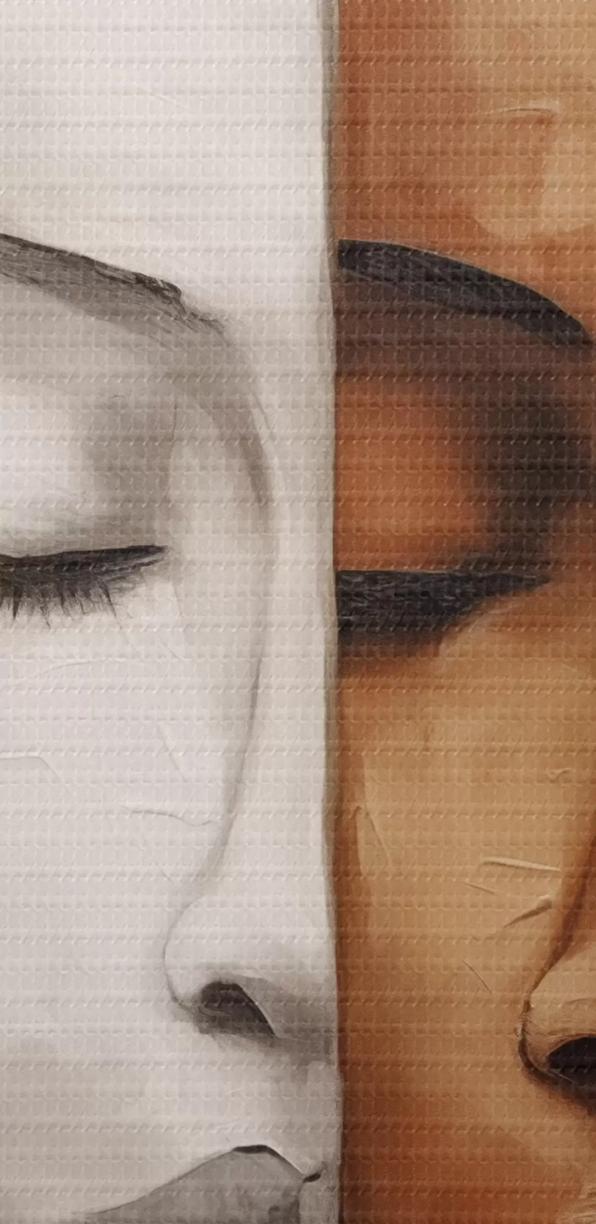 Smalkais diegu pinums uz šī audekla atgādina profesionālu mākslinieku audeklu virsmu.