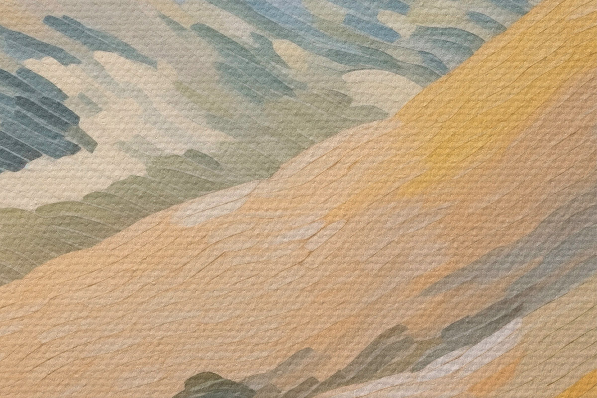 Smalkais diegu pinums uz šī audekla atgādina profesionālu mākslinieku audeklu virsmu.