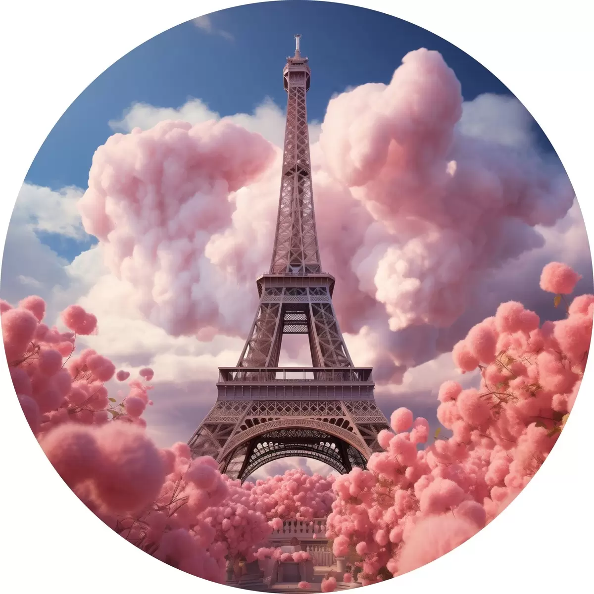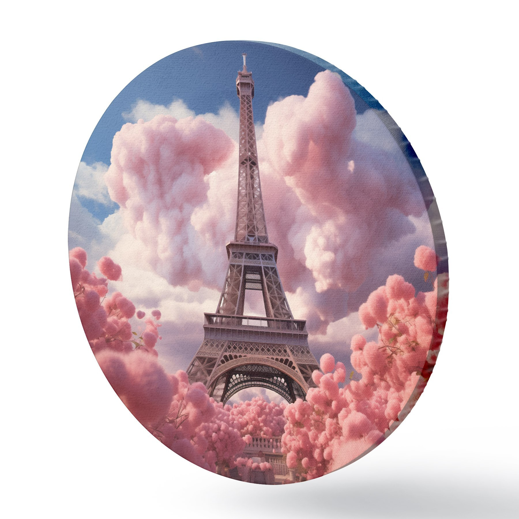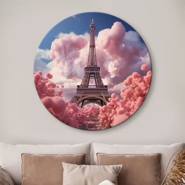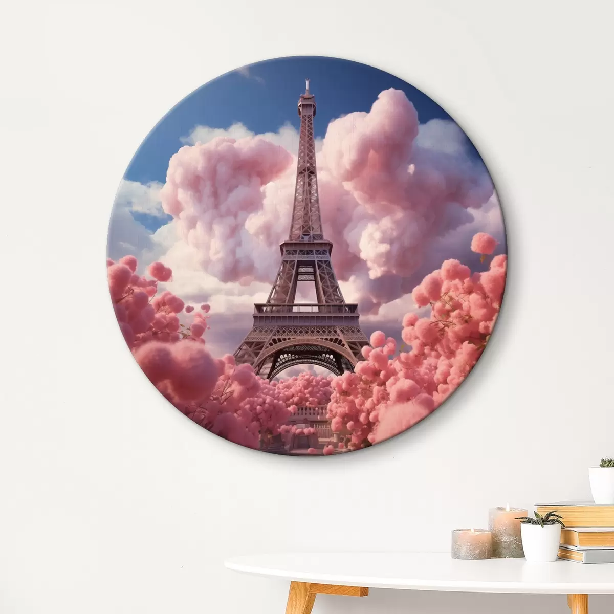 Apaļas gleznas Eifeļa tornis rozā mākoņos fantāzijas stilā r45036