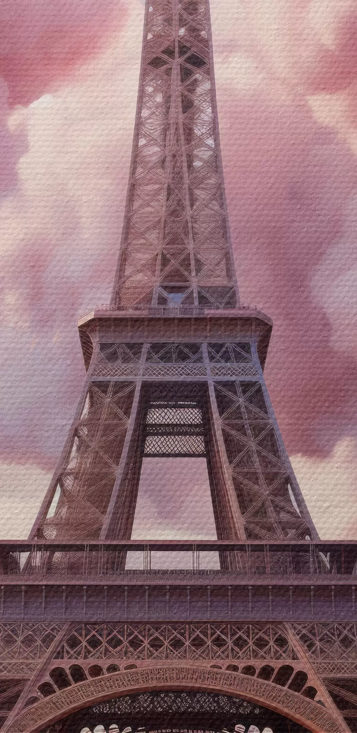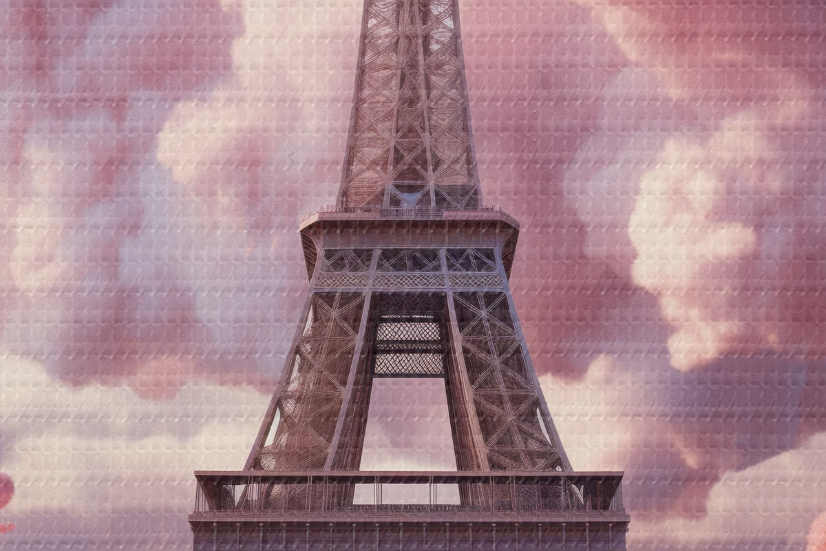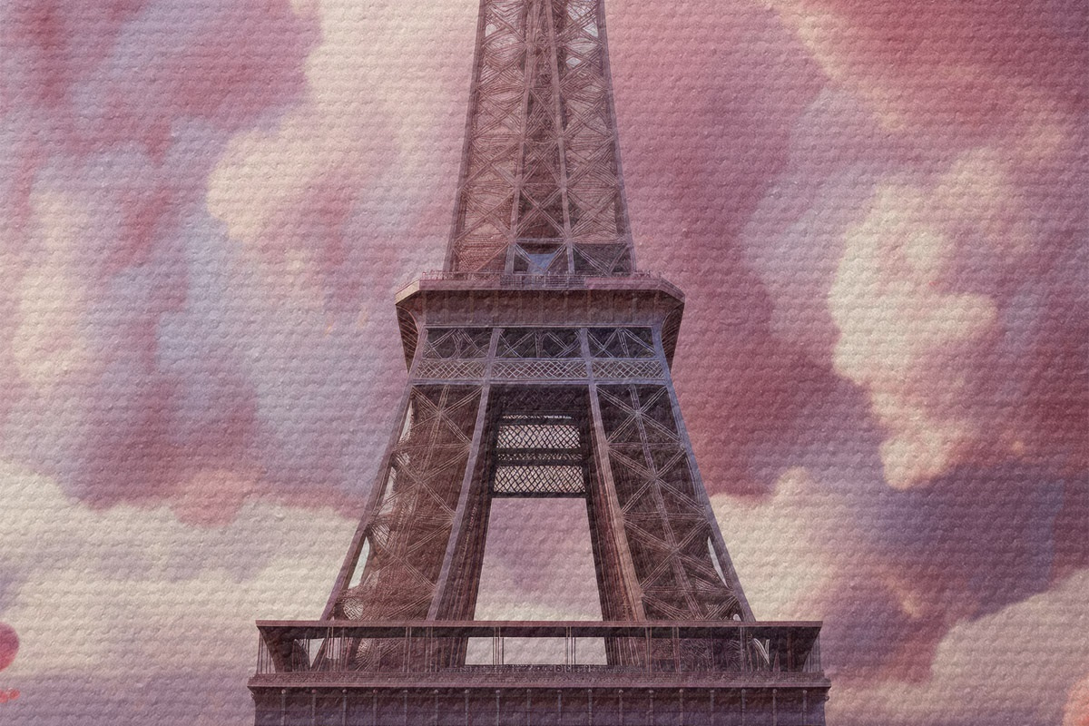 Attēls Eifeļa tornis rozā mākoņos fantāzijas stilā Nr r45036