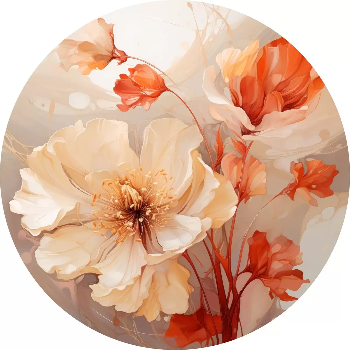 Apaļas gleznas Maģiski ziedi pasteļtoņos sapņainā stilā r45042