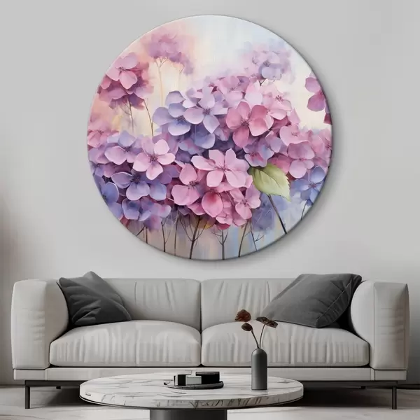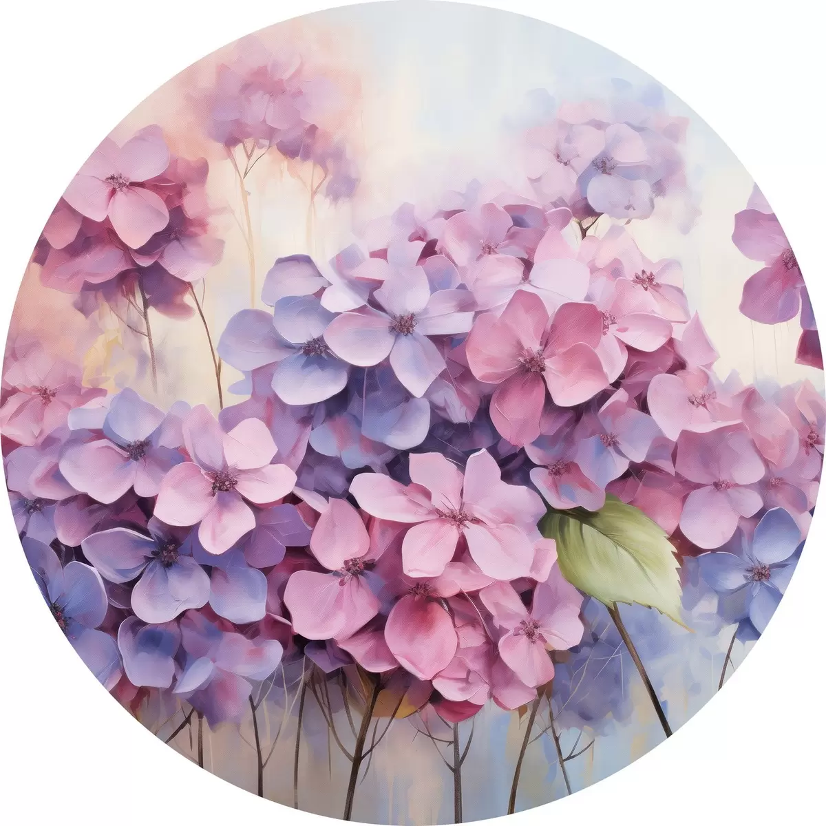 Apaļas gleznas Delikātu hortenžu lauks pasteļtoņos r45057