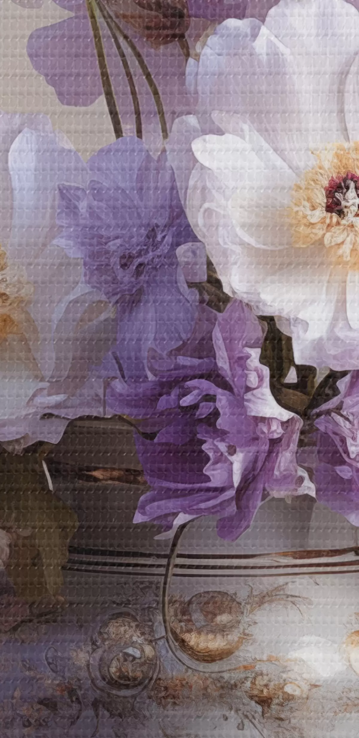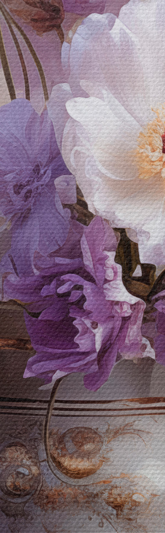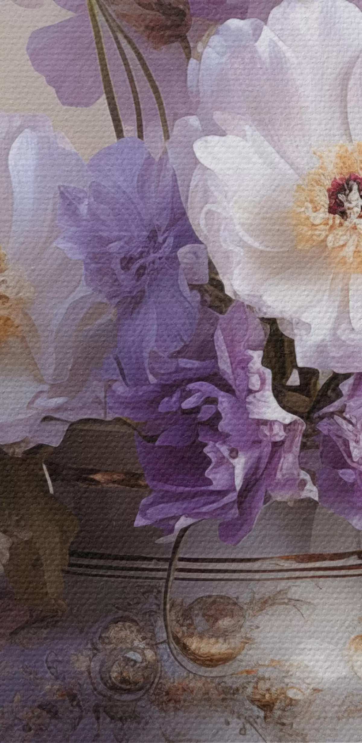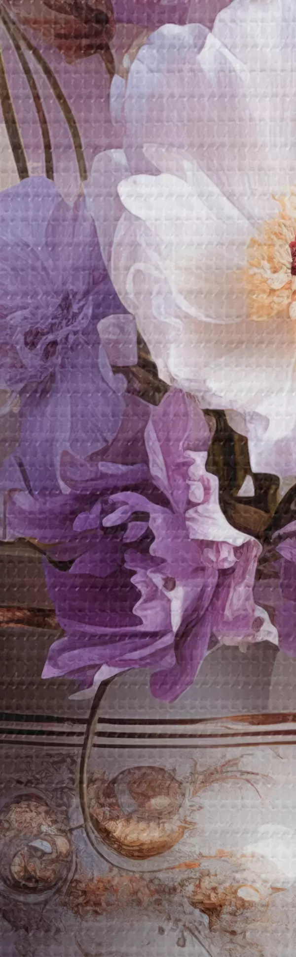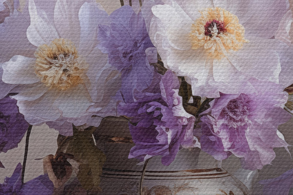 Attēls Ziedu klusā daba: balti un violeti ziedi mākslinieciskā stilā Nr r45058