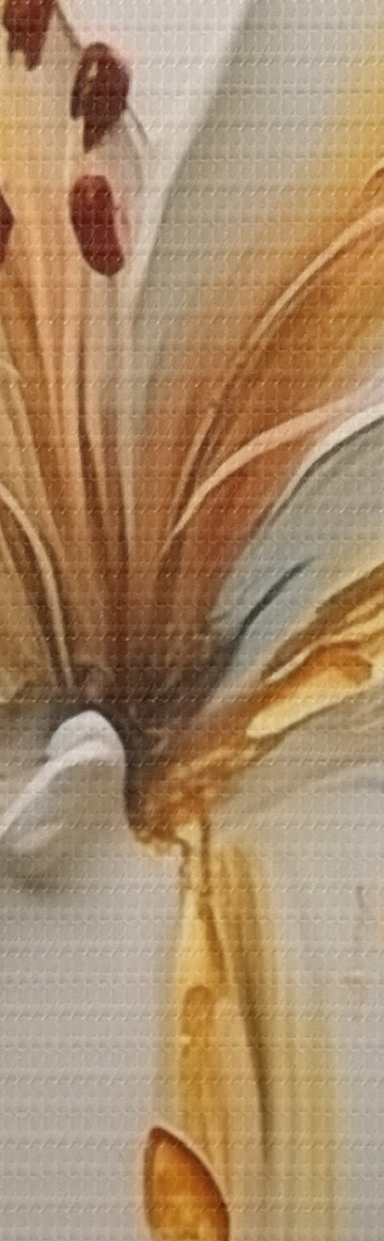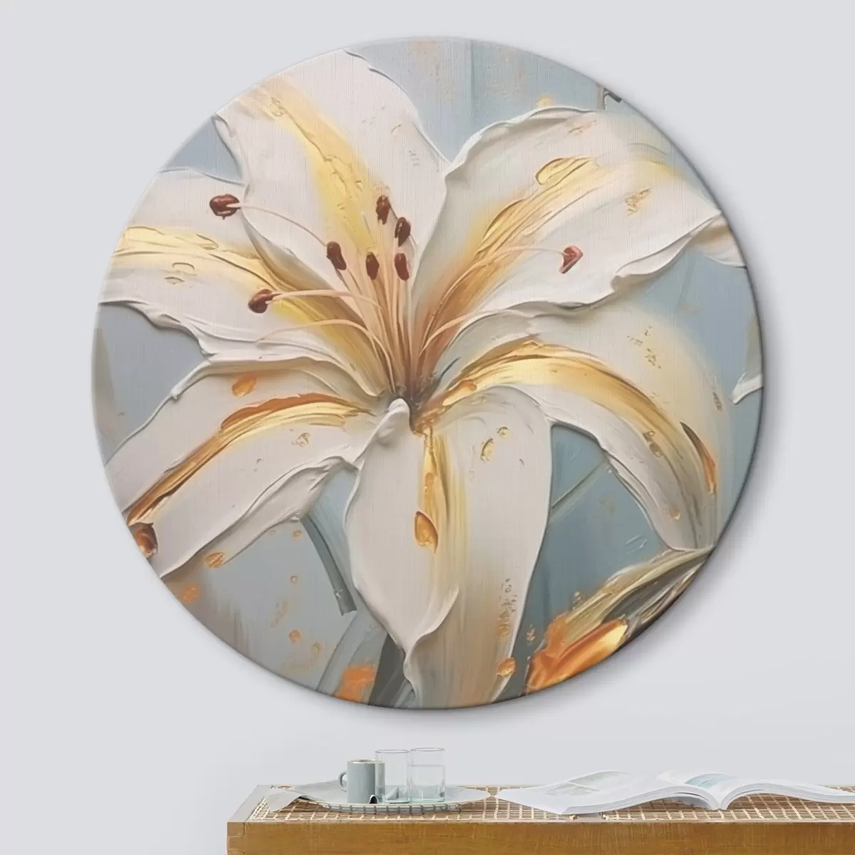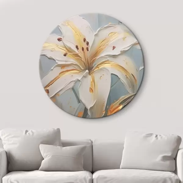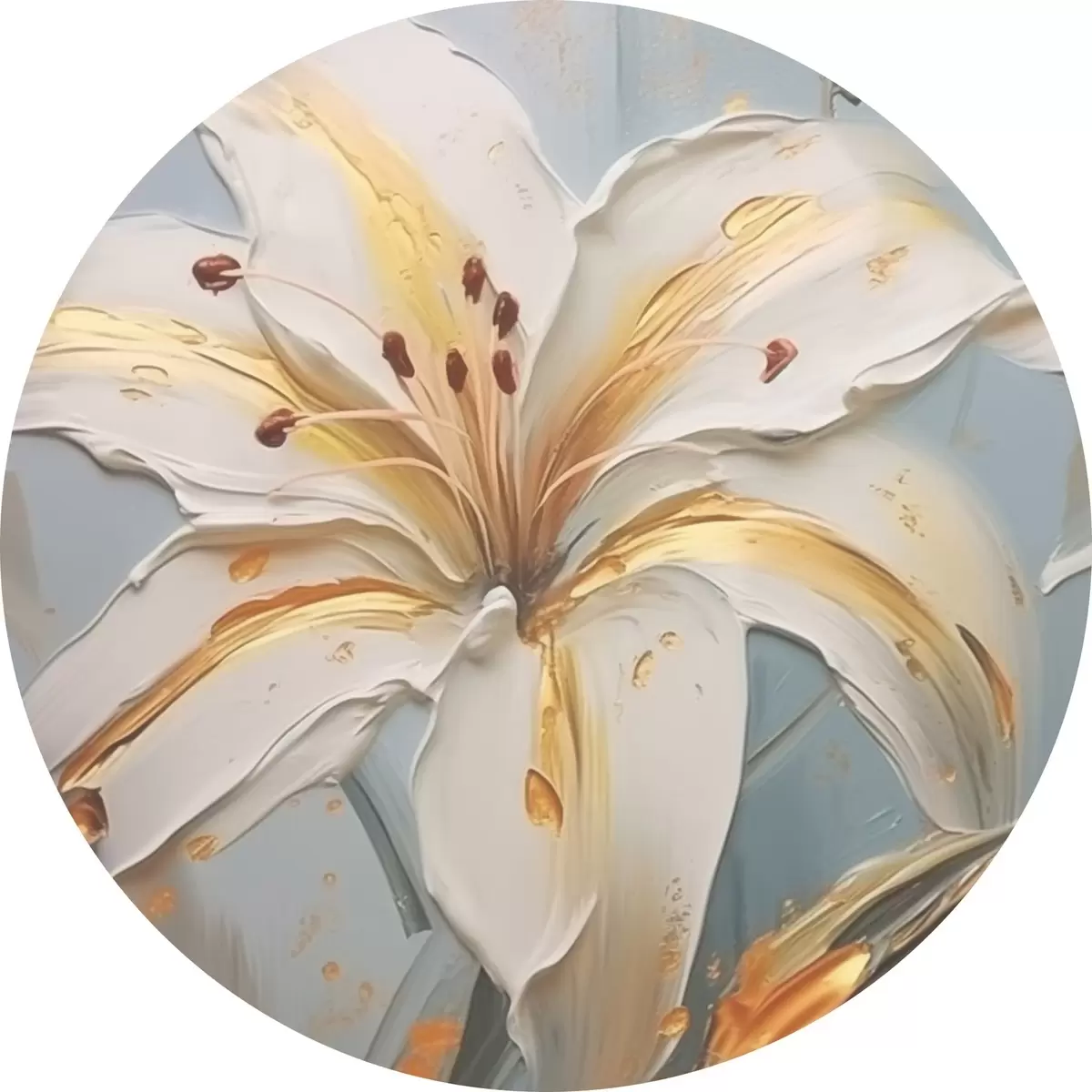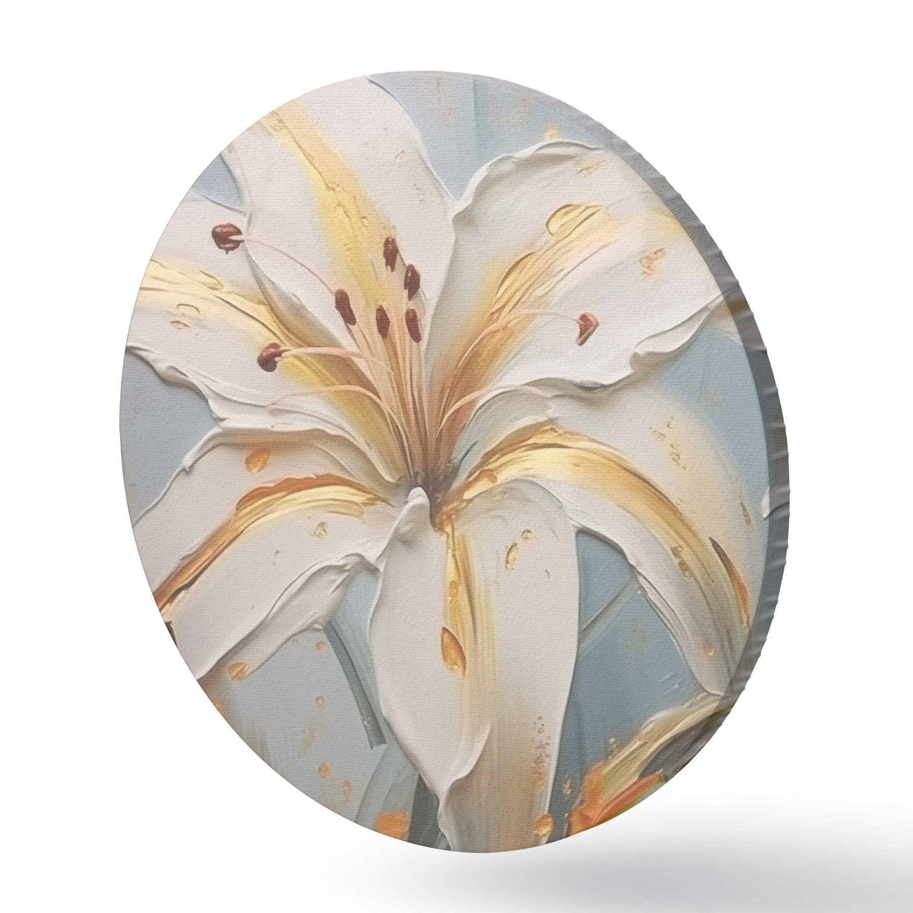 Apaļas gleznas Balta lilija ar dzelteniem triepieniem uz zila fona r45077