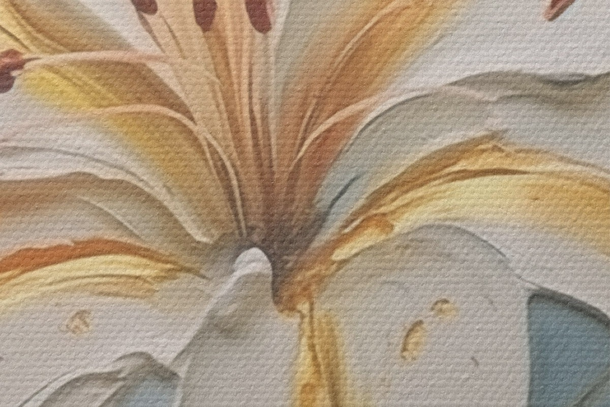 Attēls Balta lilija ar dzelteniem triepieniem uz zila fona Nr r45077