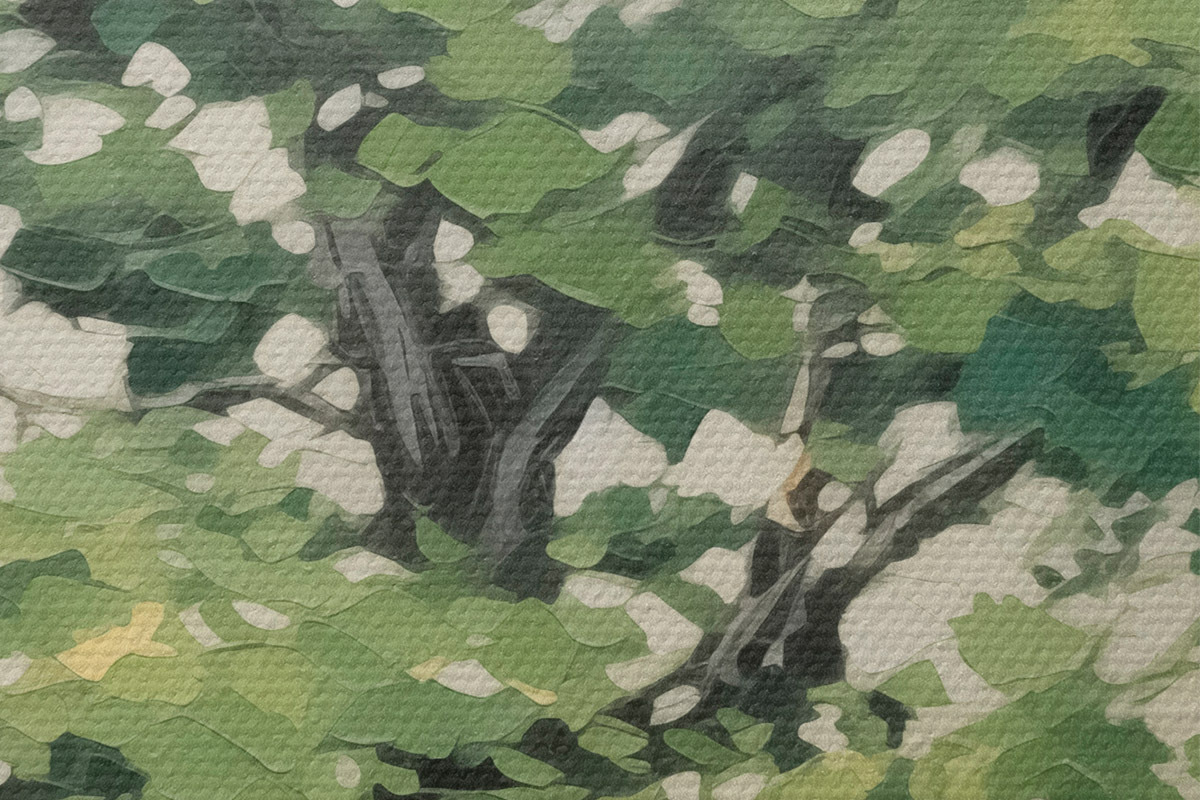 Smalkais diegu pinums uz šī audekla atgādina profesionālu mākslinieku audeklu virsmu.
