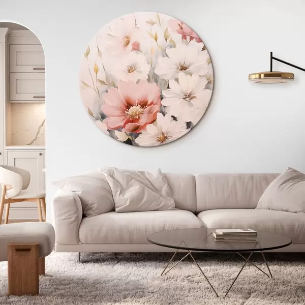 Apaļas gleznas Maiga ziedu imitācija glezniecība r45119
