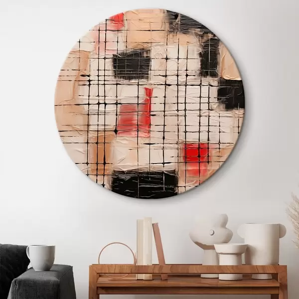 Apaļas gleznas Abstrakcija ar līnijām un otas triepienu imitāciju r45122