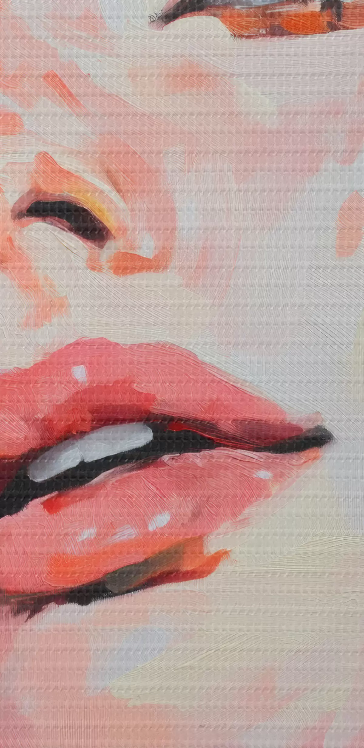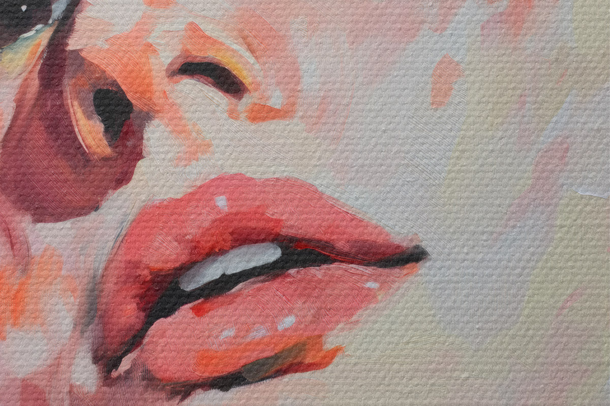 Smalkais diegu pinums uz šī audekla atgādina profesionālu mākslinieku audeklu virsmu.