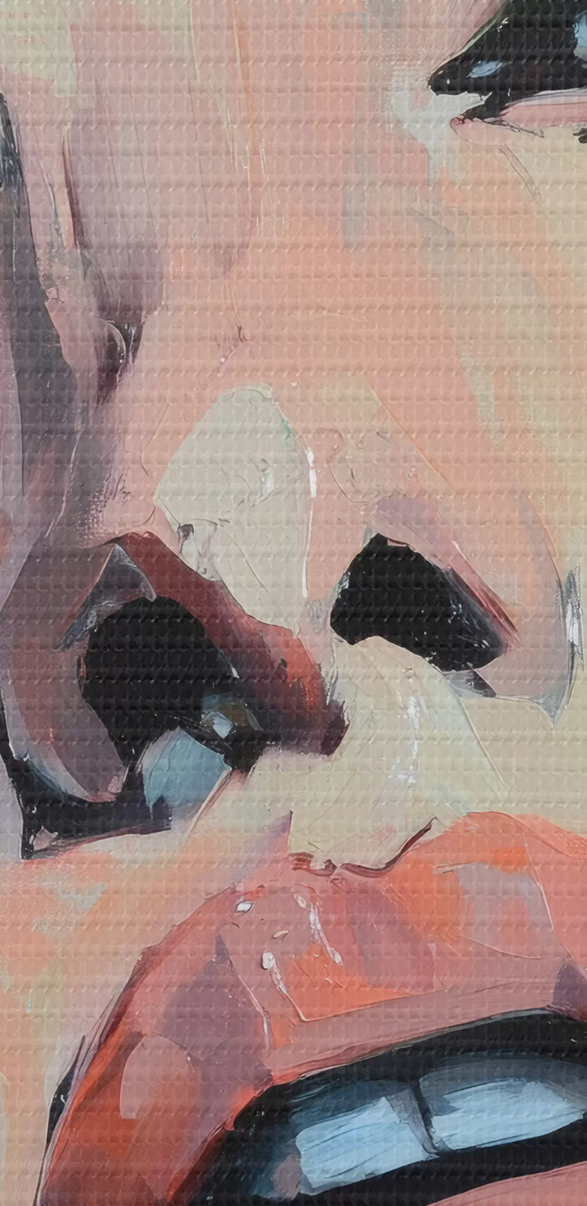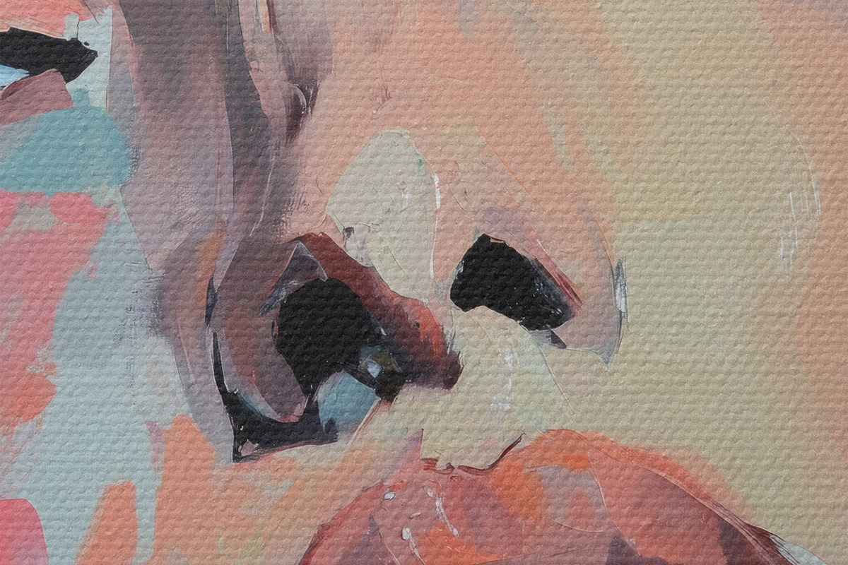 Smalkais diegu pinums uz šī audekla atgādina profesionālu mākslinieku audeklu virsmu.