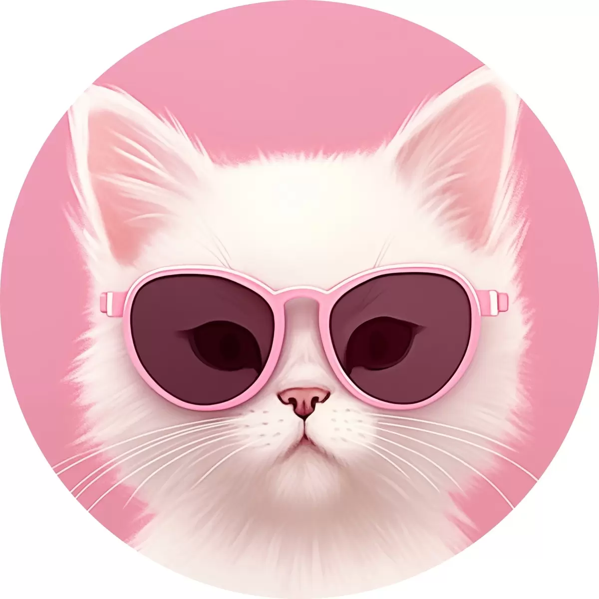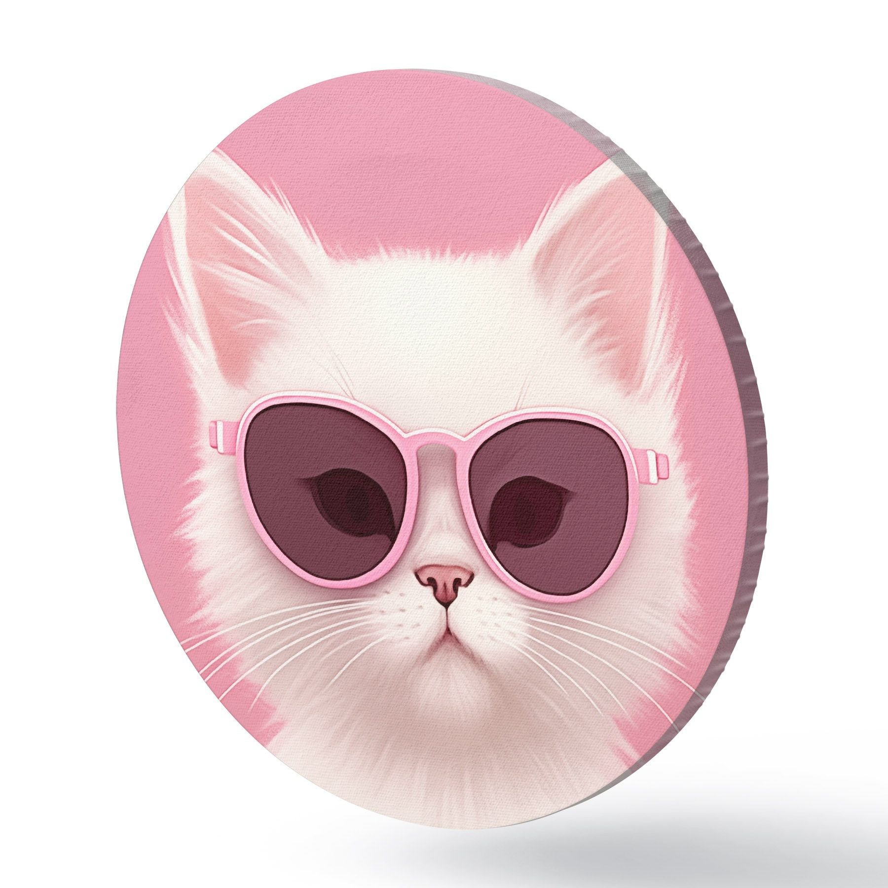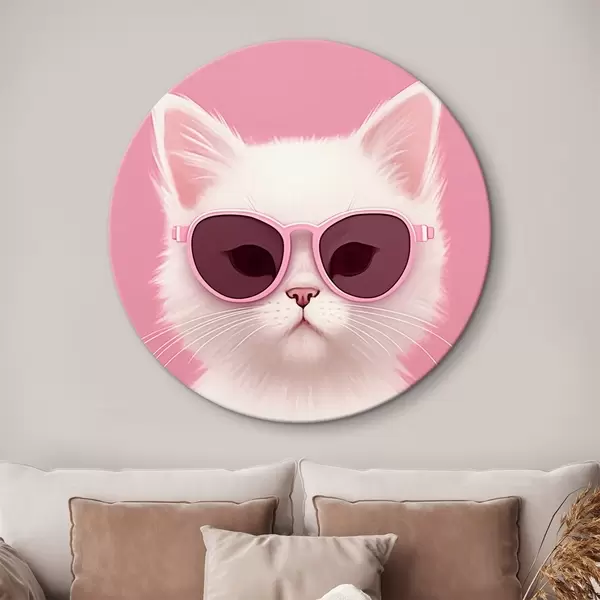 Apaļas gleznas Balts kaķis rozā brillēs r45145