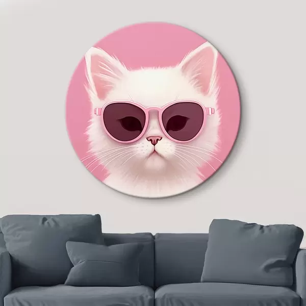 Apaļas gleznas Balts kaķis rozā brillēs r45145