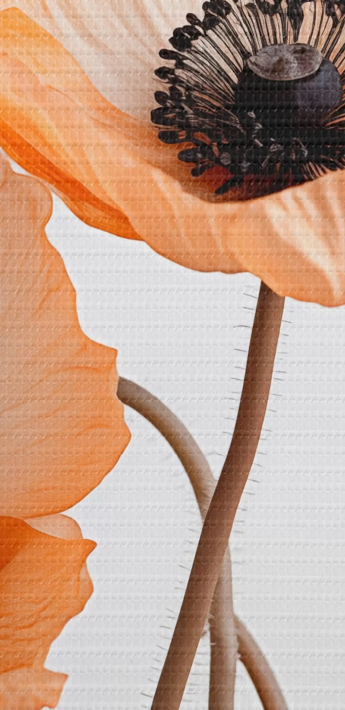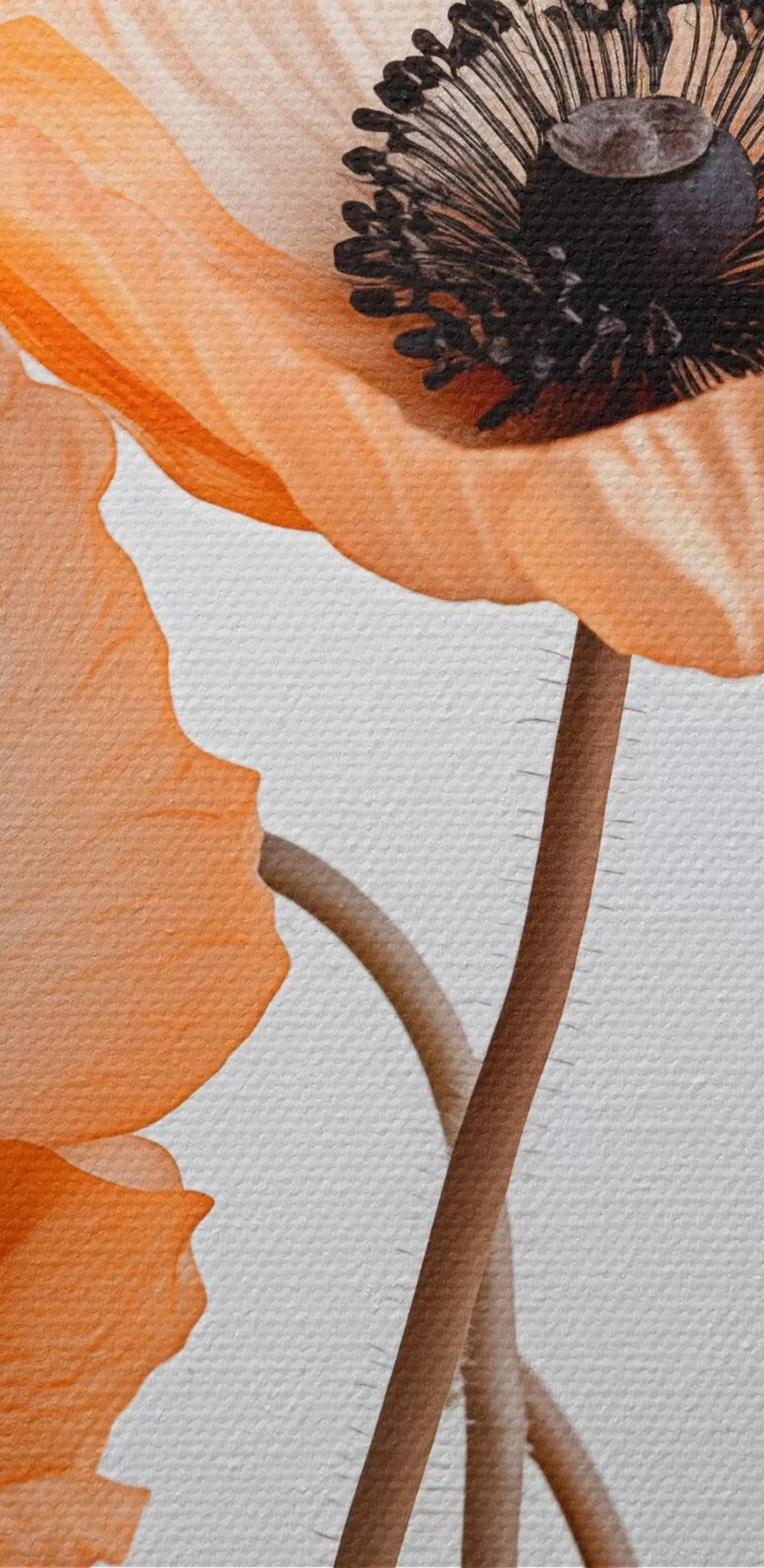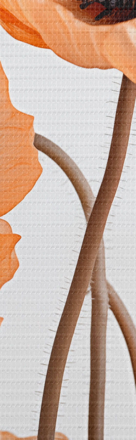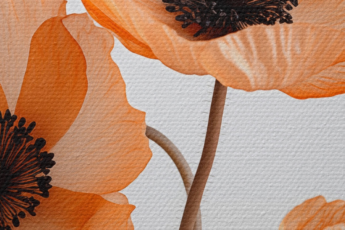 Attēls Oranžās magones, kaltēti ziedi uz gaiša fona, maigs apgaismojums, maigi ziedlapiņas, ziedu kompozīcija Nr r45167