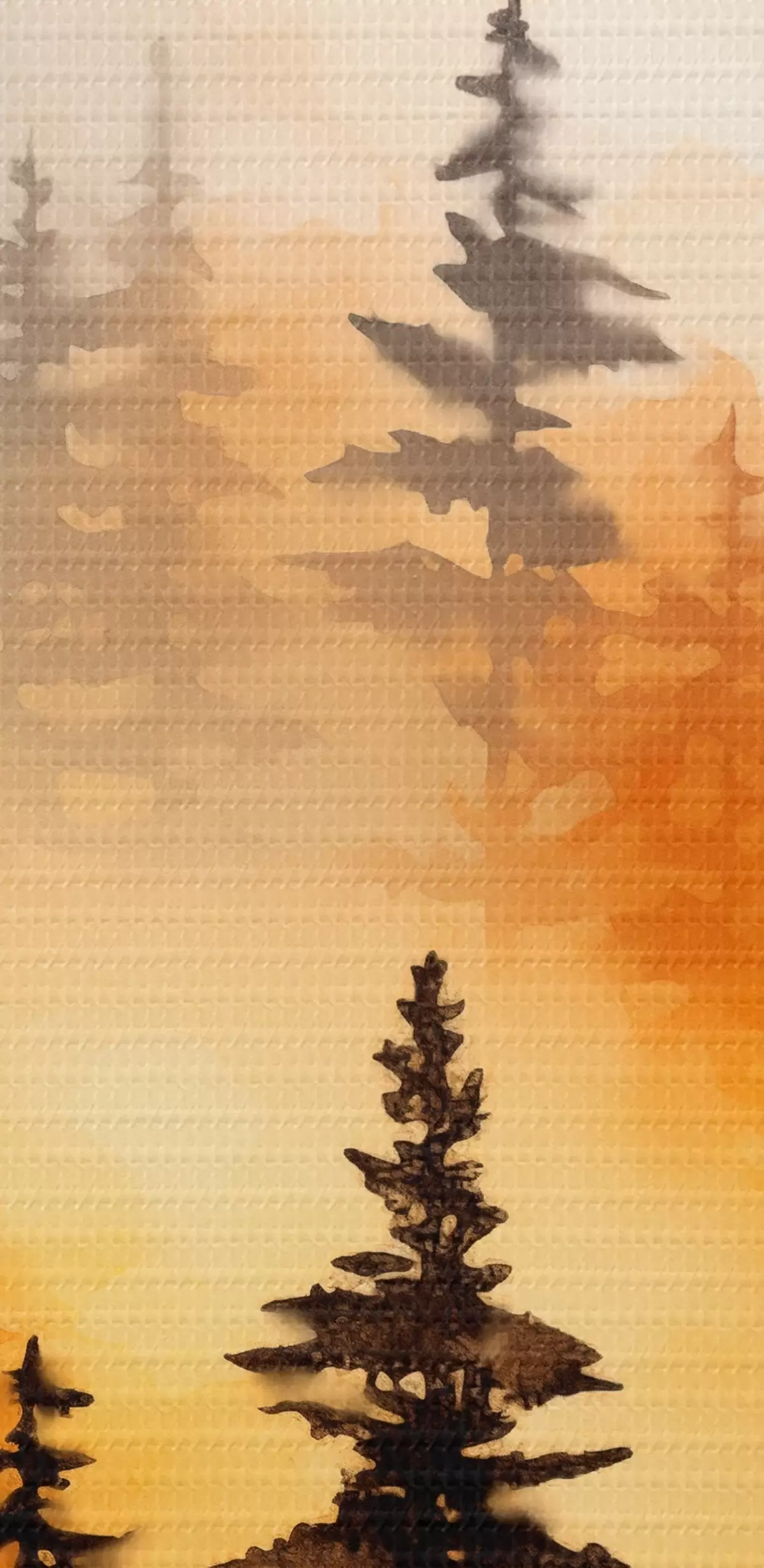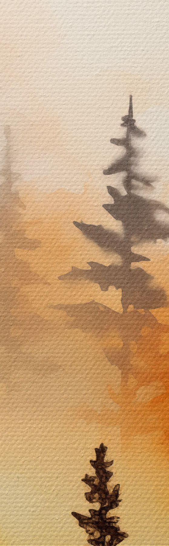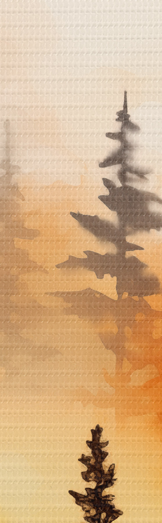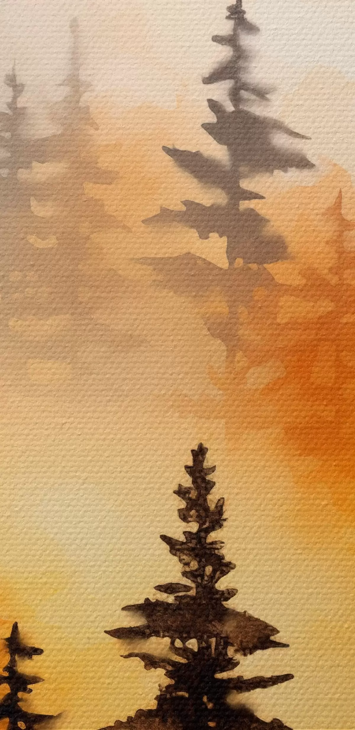 Attēls Ainavu akvareļglezniecība, kas imitē mežu ar augstām priedēm un kalniem fonā Nr r45170
