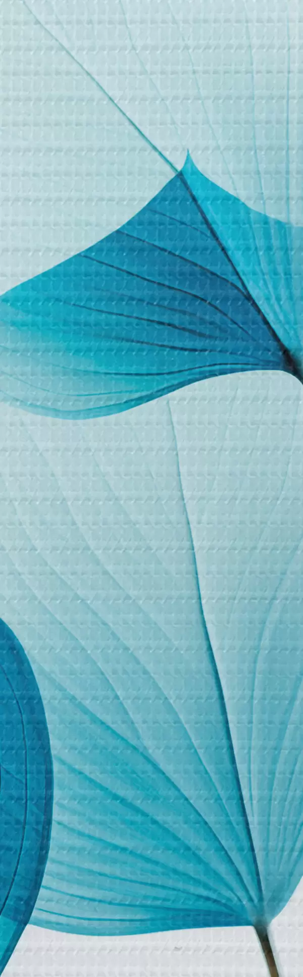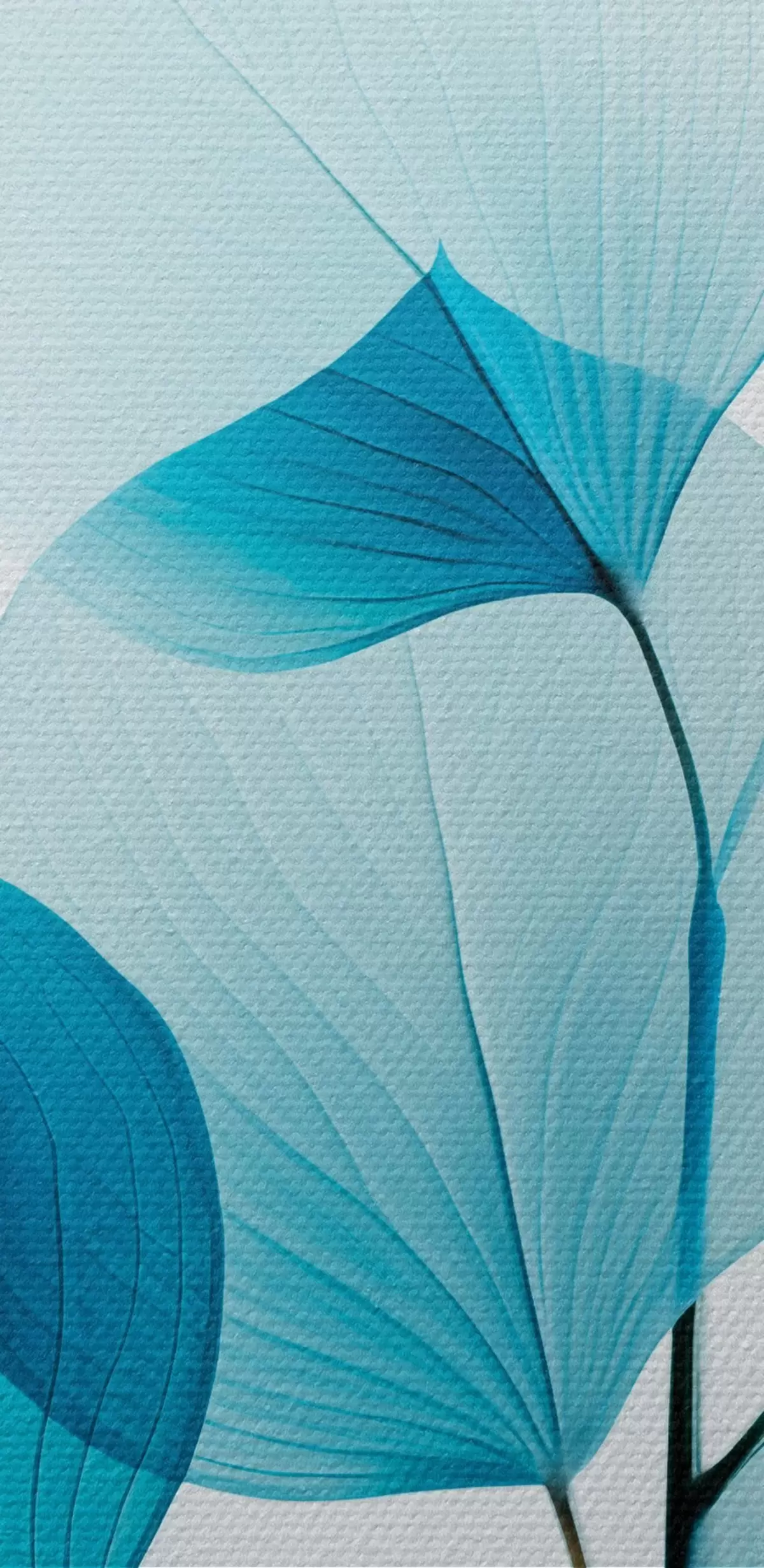 Attēls Zariņš ar caurspīdīgām zilām lapām, redzamas maigas dzīslas, viegla un mierīga kompozīcija, minimālisma estētika Nr r45175