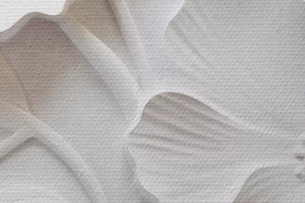 Attēls Dekoratīvi minimālisma stilā veidoti balti ziedi ar lapām, reljefa imitācija, balts fons Nr r45179