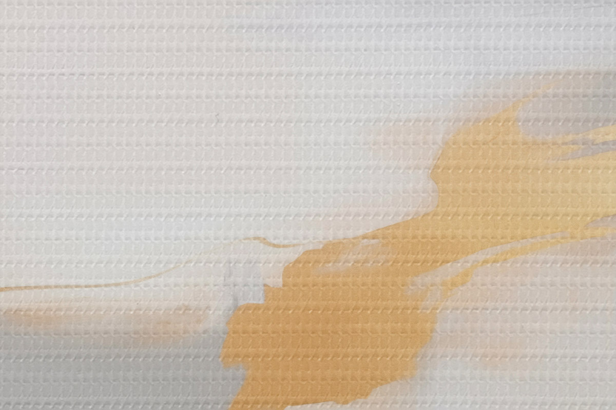 Smalkais diegu pinums uz šī audekla atgādina profesionālu mākslinieku audeklu virsmu.
