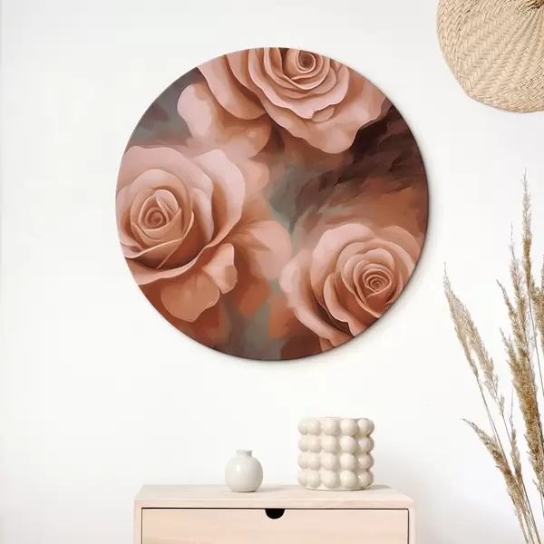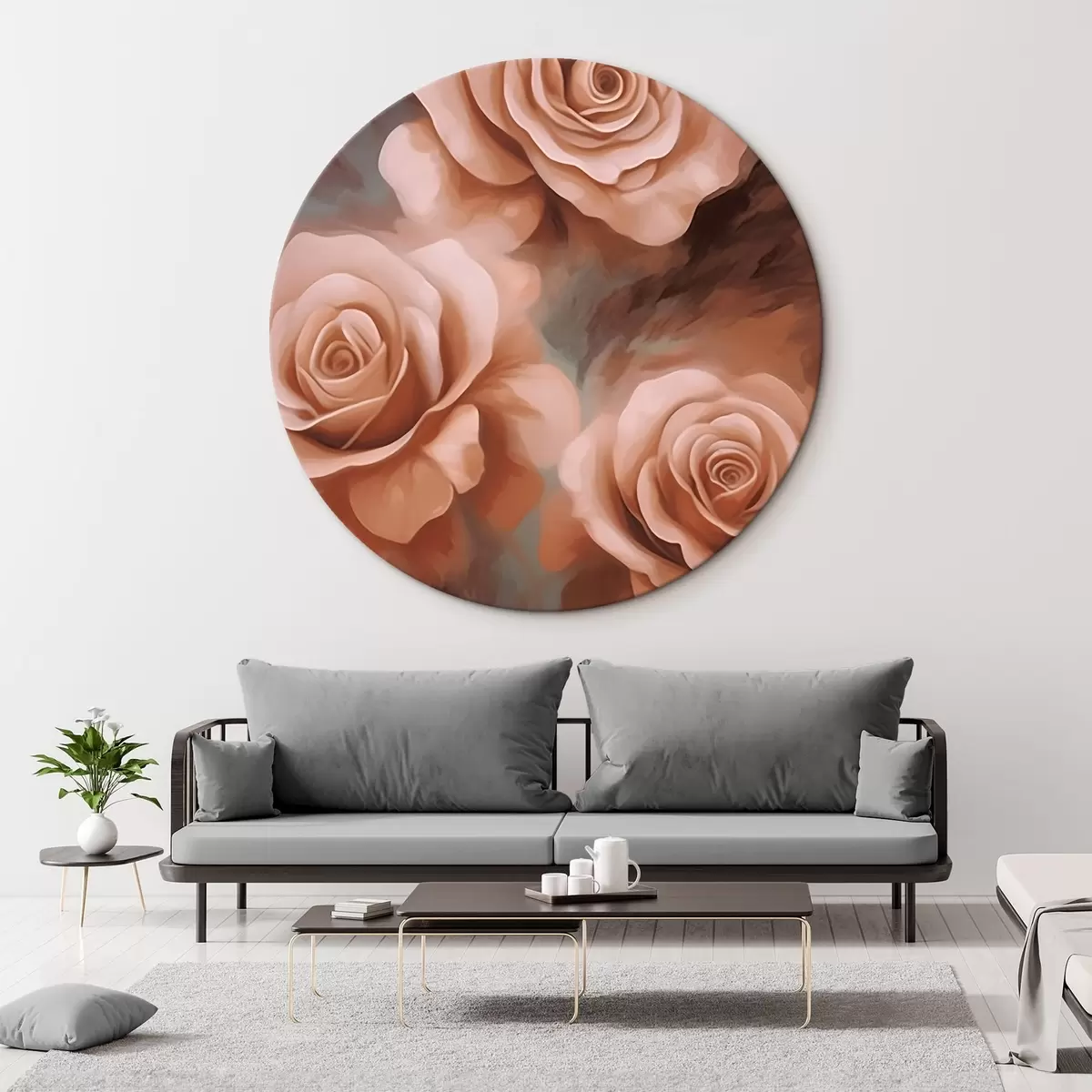 Apaļas gleznas Trīs rozā rozes uz neskaidra fona r45221