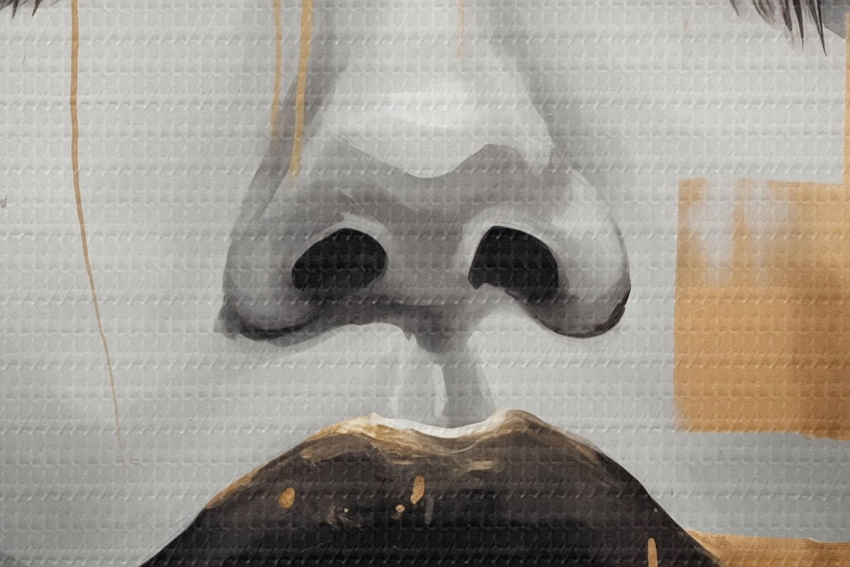 Smalkais diegu pinums uz šī audekla atgādina profesionālu mākslinieku audeklu virsmu.
