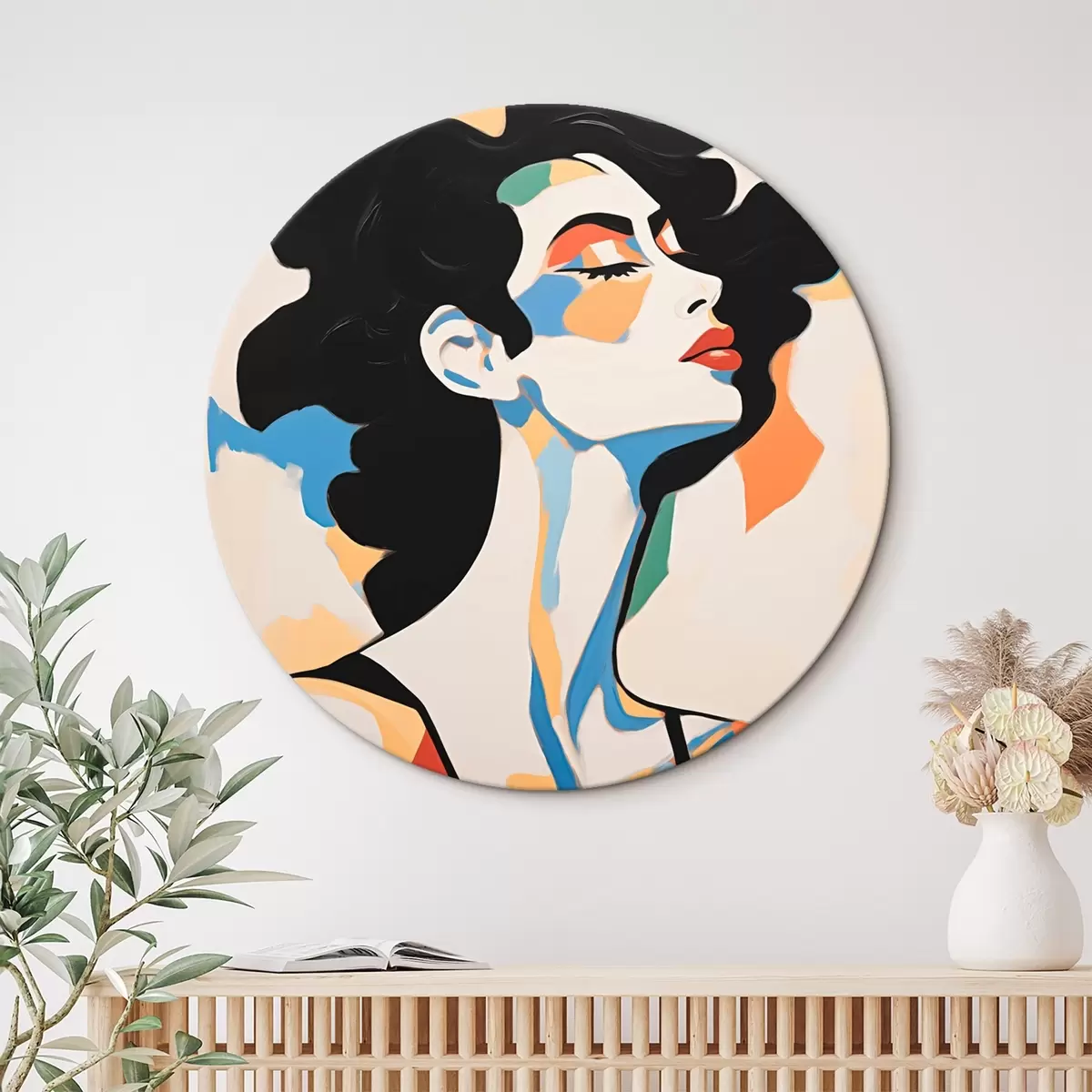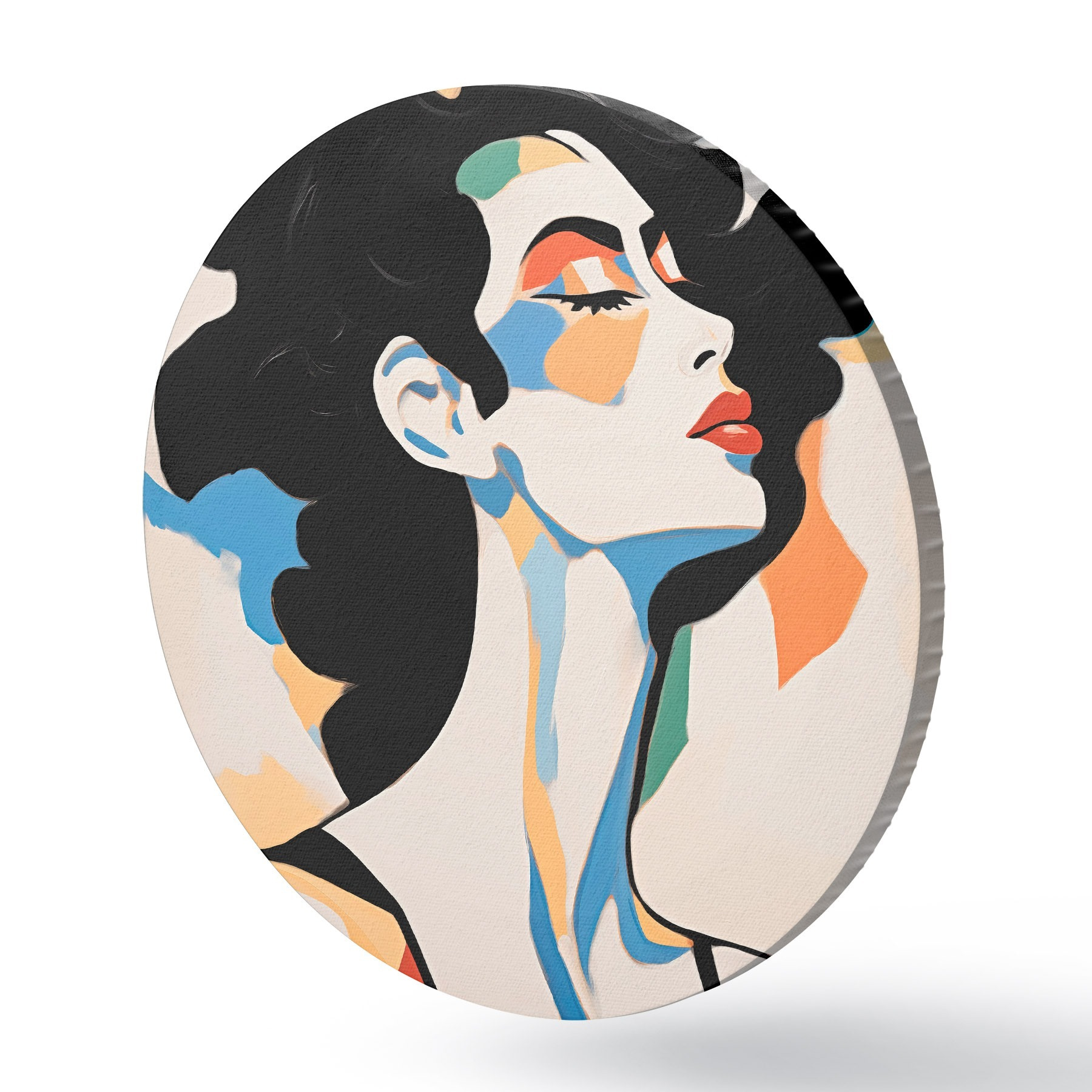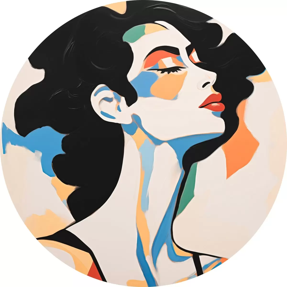 Apaļas gleznas Sievietes abstraktais portrets ar otas triepienu imitāciju r45233