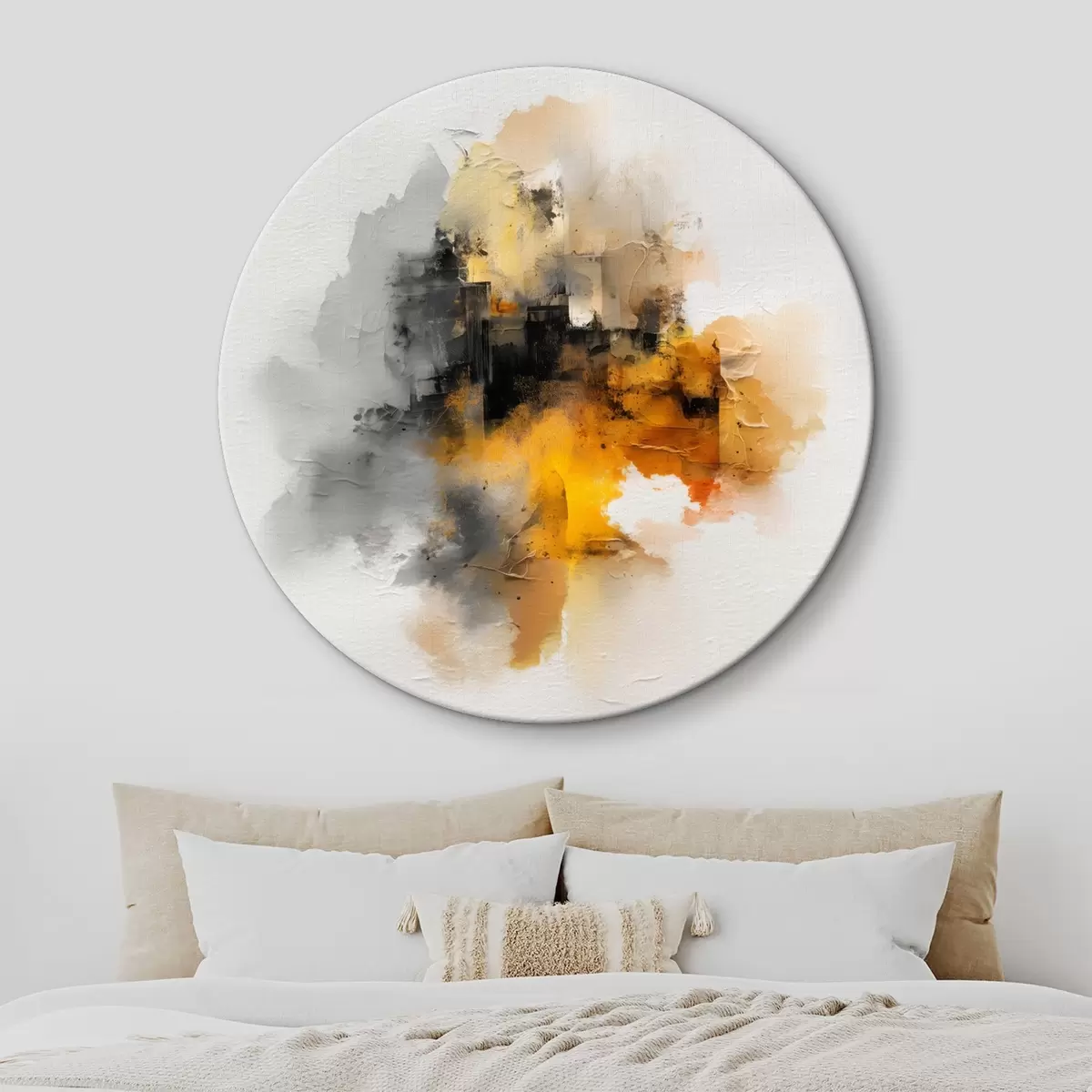 Apaļas gleznas Abstrakta kompozīcija oranžos un pelēkos toņos ar faktūru r45238