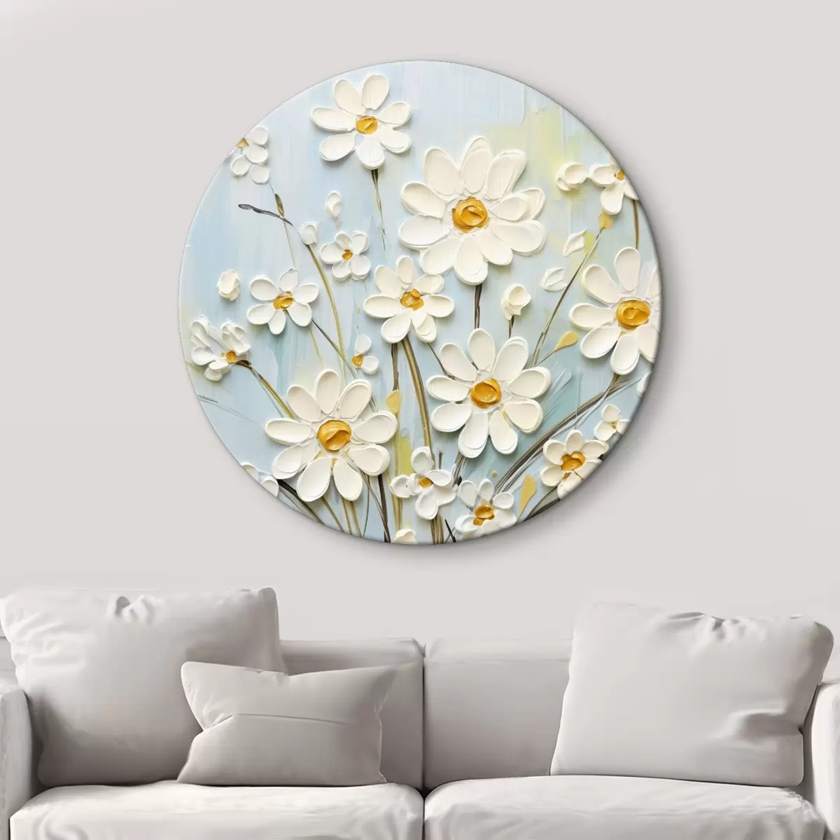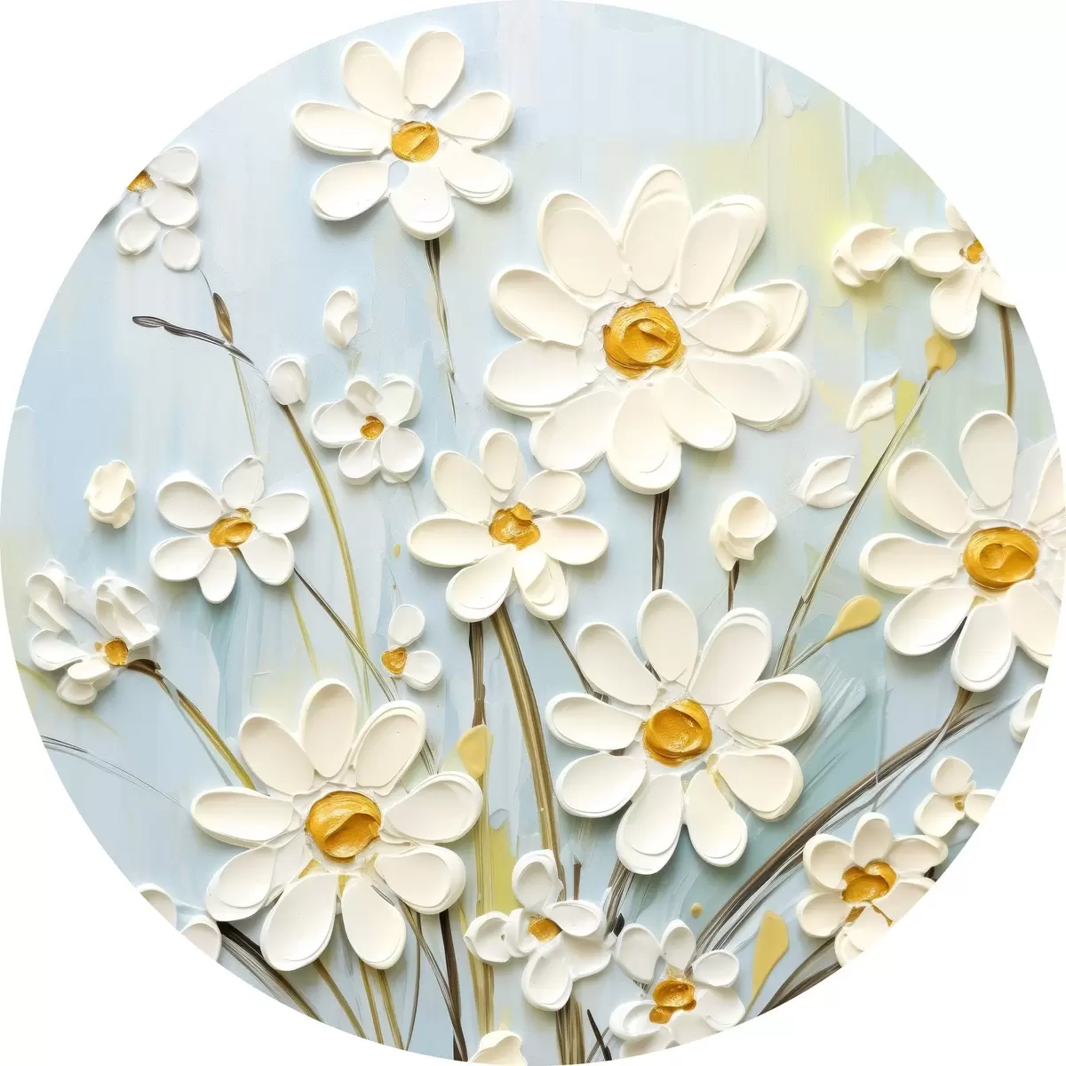 Apaļas gleznas Fakturētas margrietiņas: impasto māksla ar izteiksmīgiem otas triepieniem r45266
