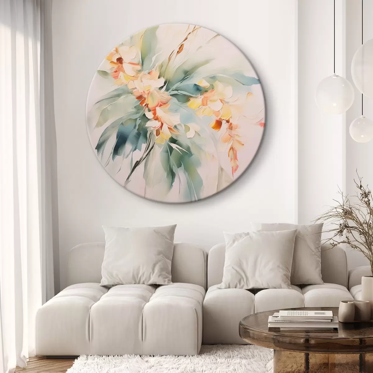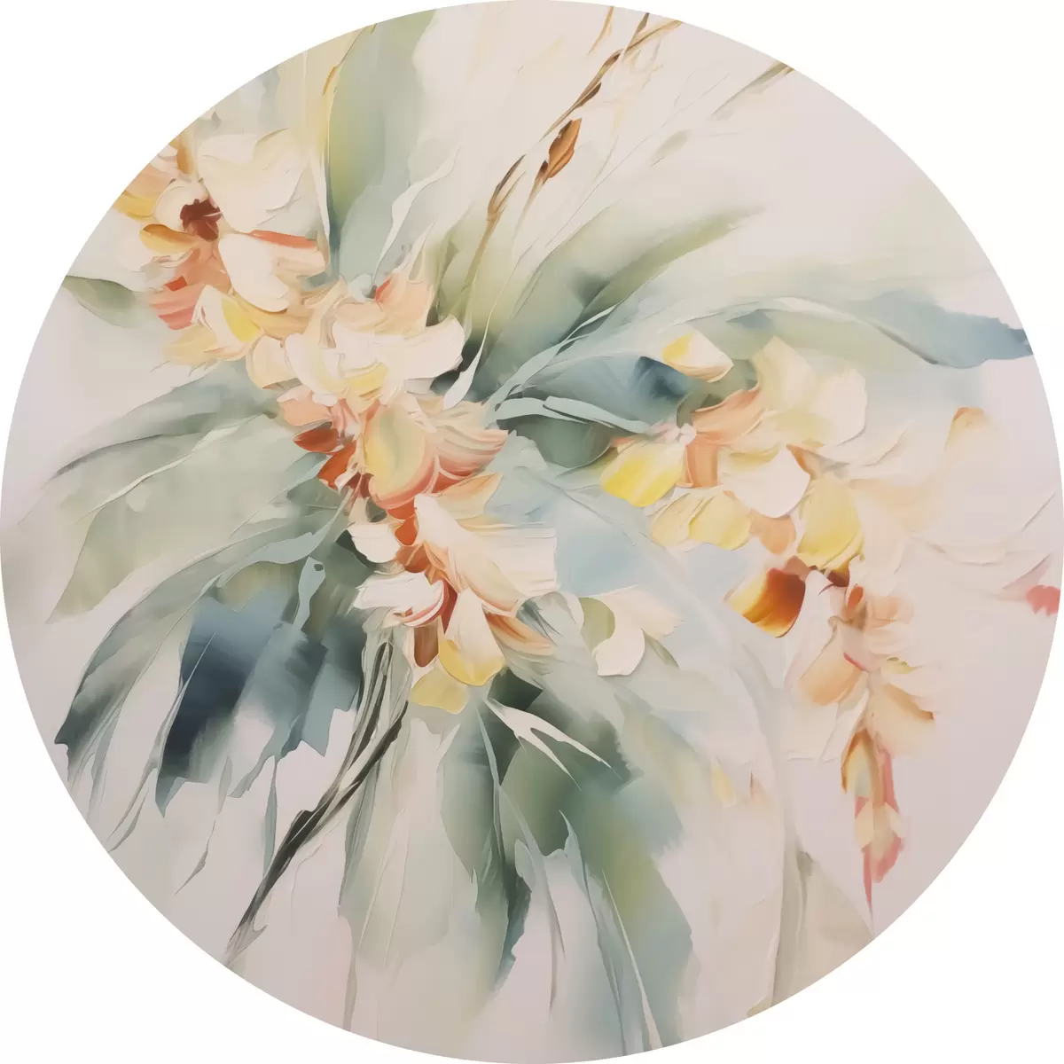 Apaļas gleznas Abstraktie ziedi lapotnē r45305