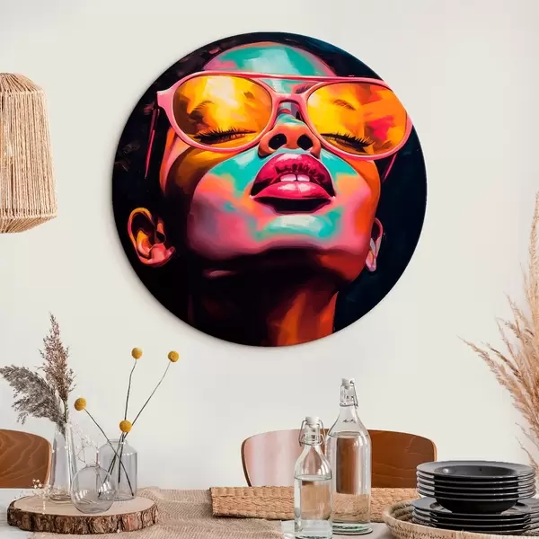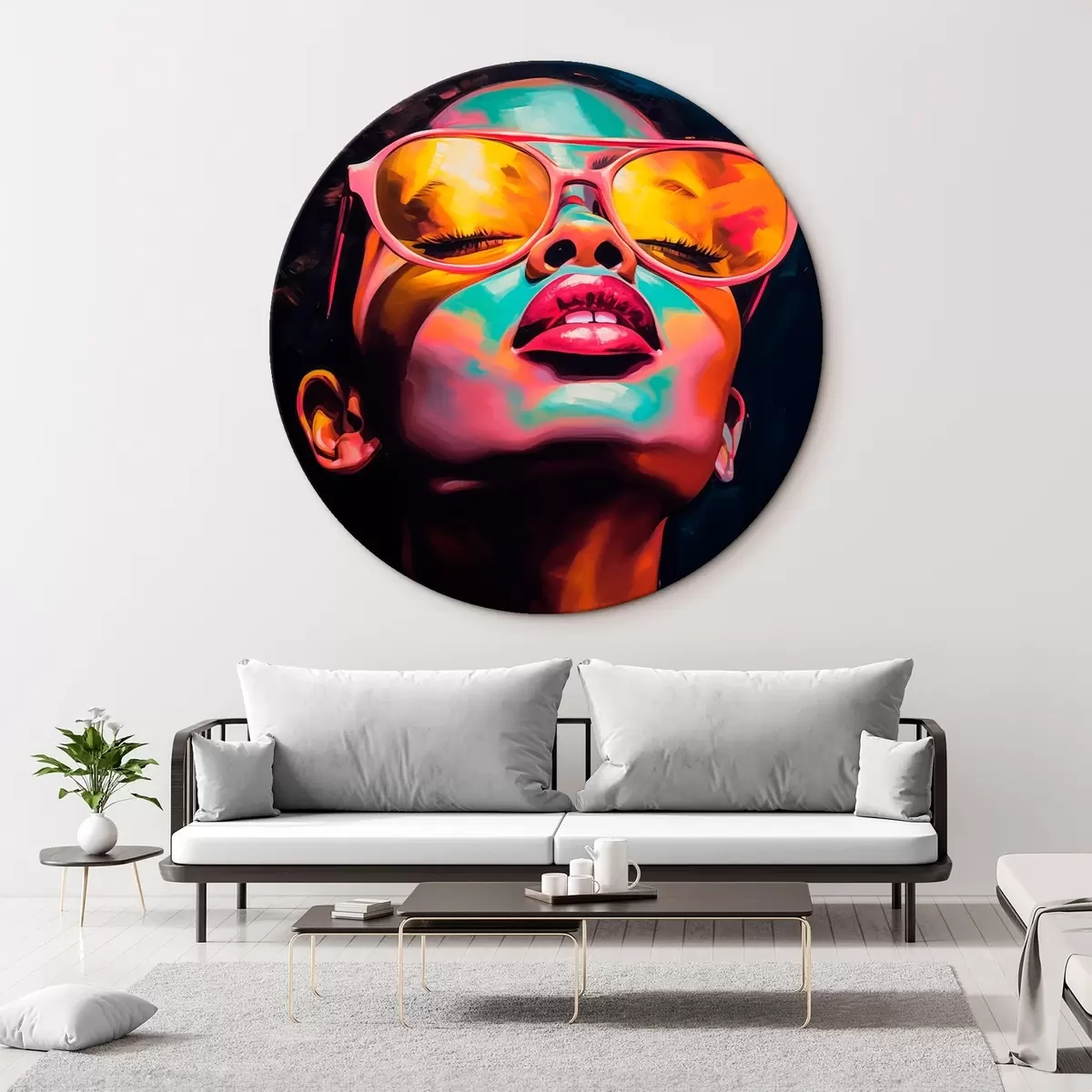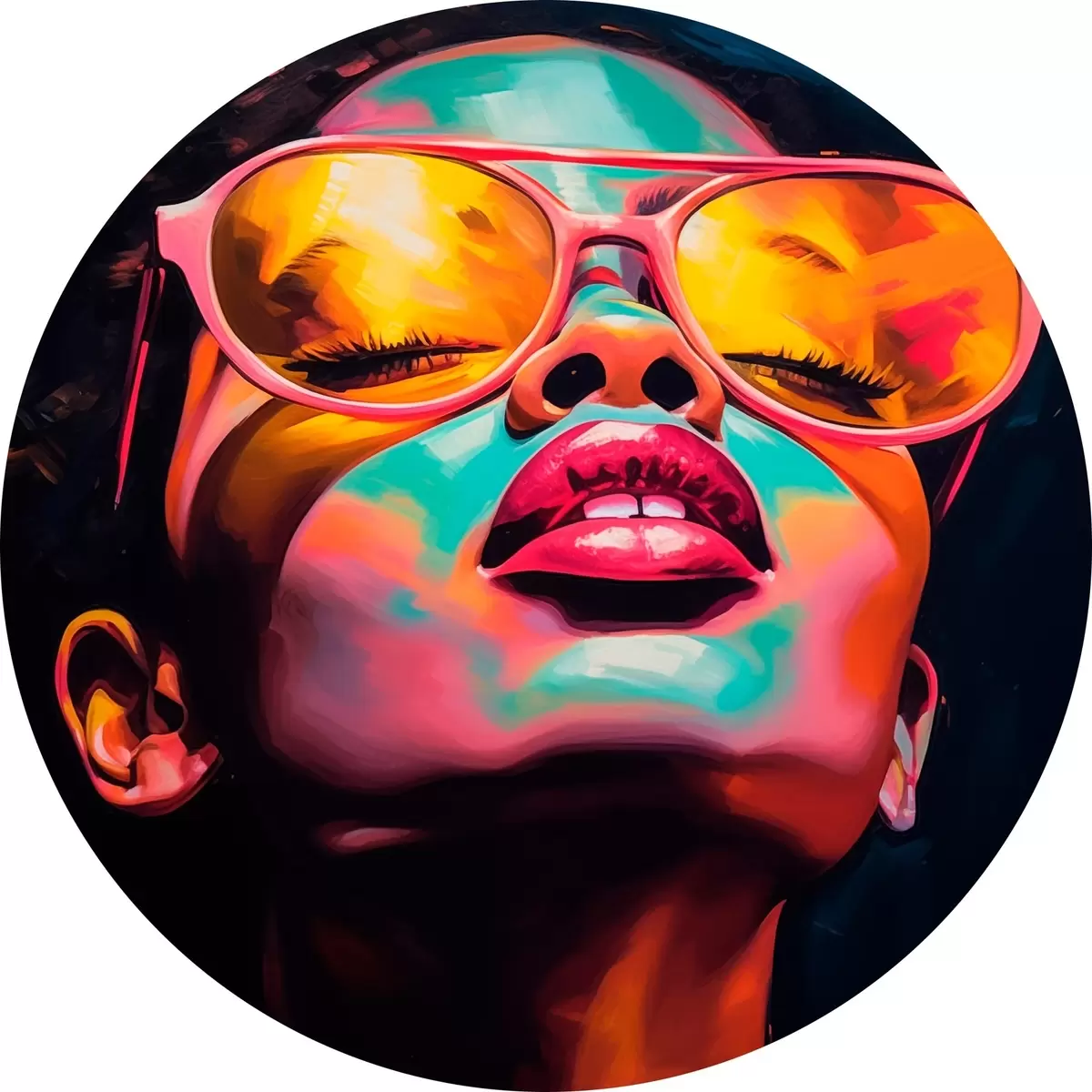 Apaļas gleznas Sieviete ar dzeltenām brillēm r45311
