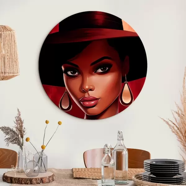 Apaļas gleznas Sieviete cepurē ar auskariem r45322