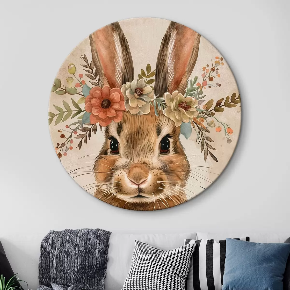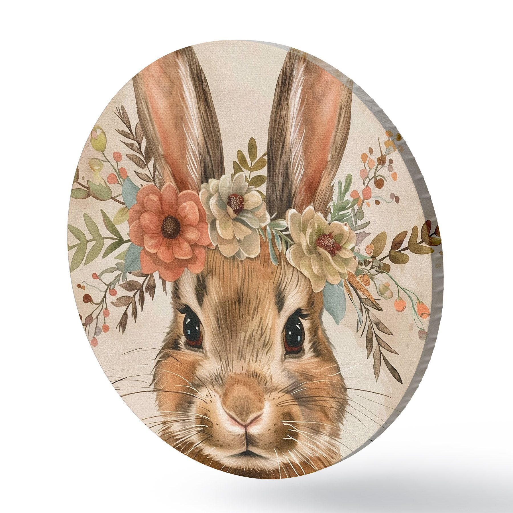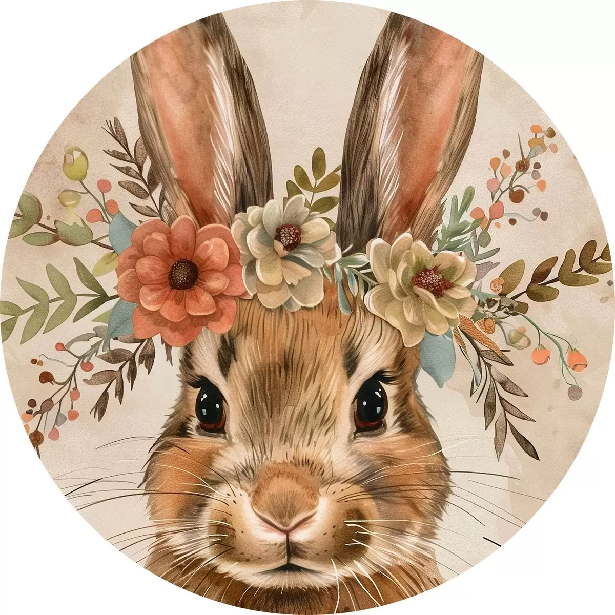 Apaļas gleznas Gudrs zaķis ar ziediem akvareļu stilā r45332