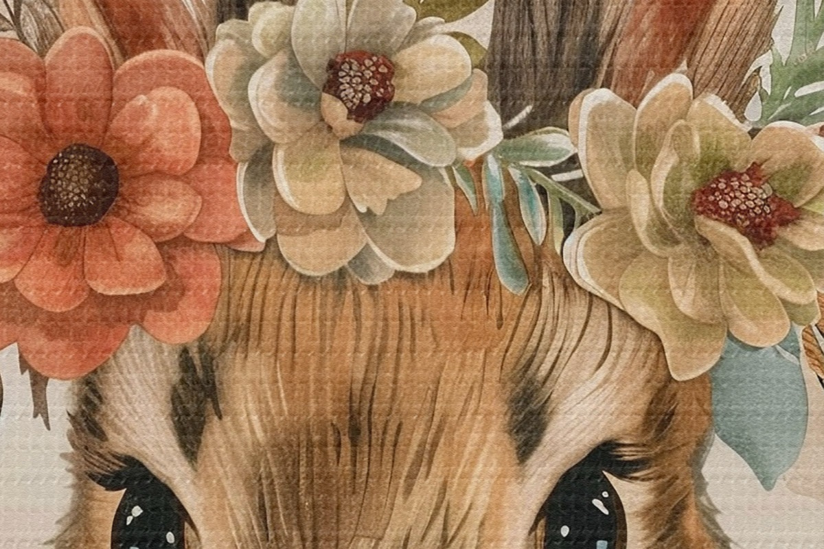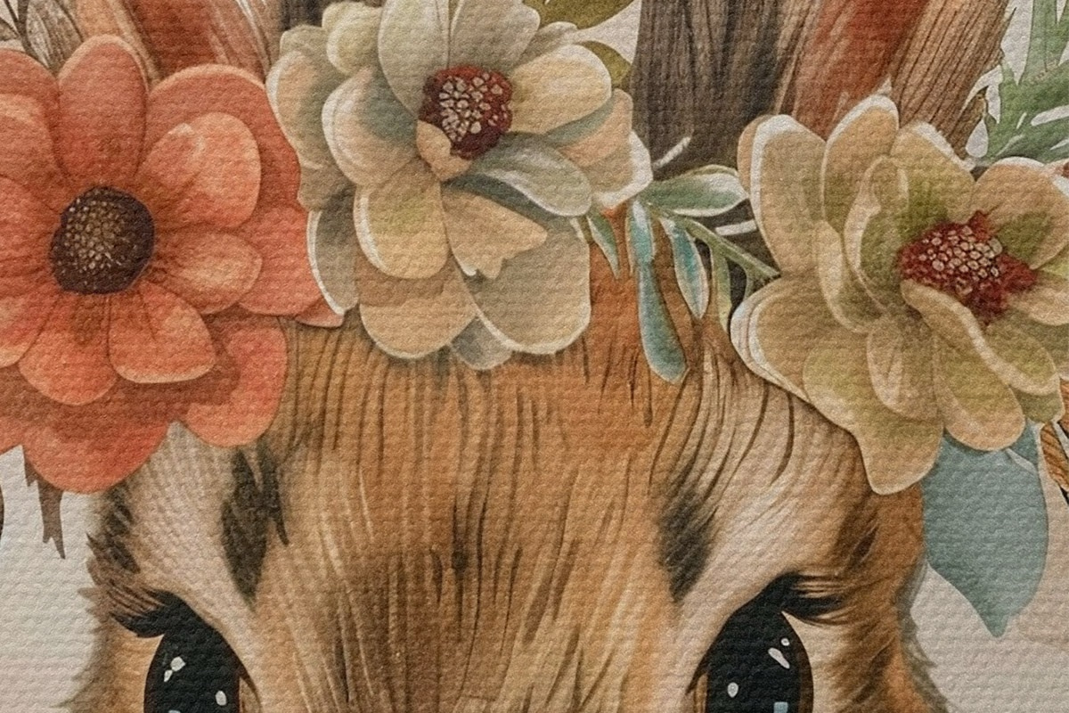 Attēls Gudrs zaķis ar ziediem akvareļu stilā Nr r45332