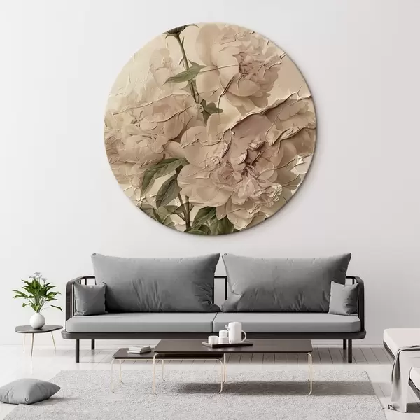 Apaļas gleznas Sulīgs peoniju pušķis uz gaiša fona r45337