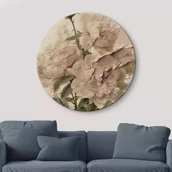 Apaļas gleznas Sulīgs peoniju pušķis uz gaiša fona r45337