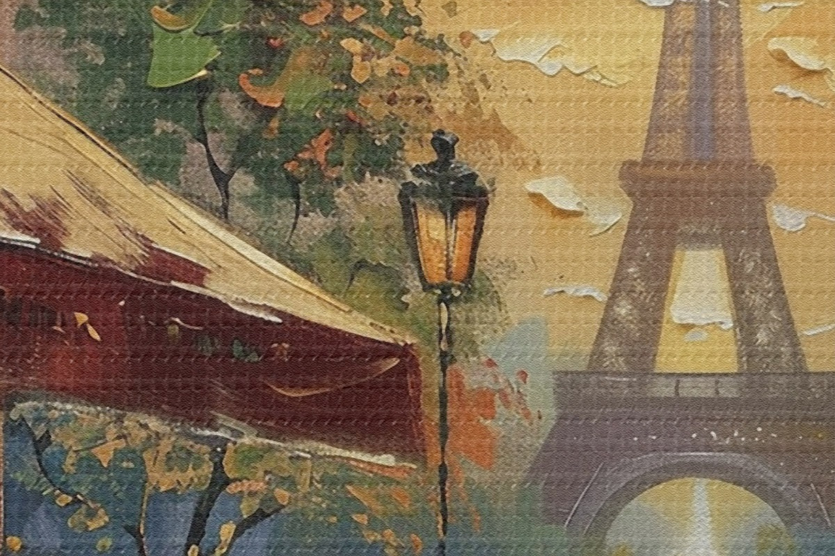 Smalkais diegu pinums uz šī audekla atgādina profesionālu mākslinieku audeklu virsmu.