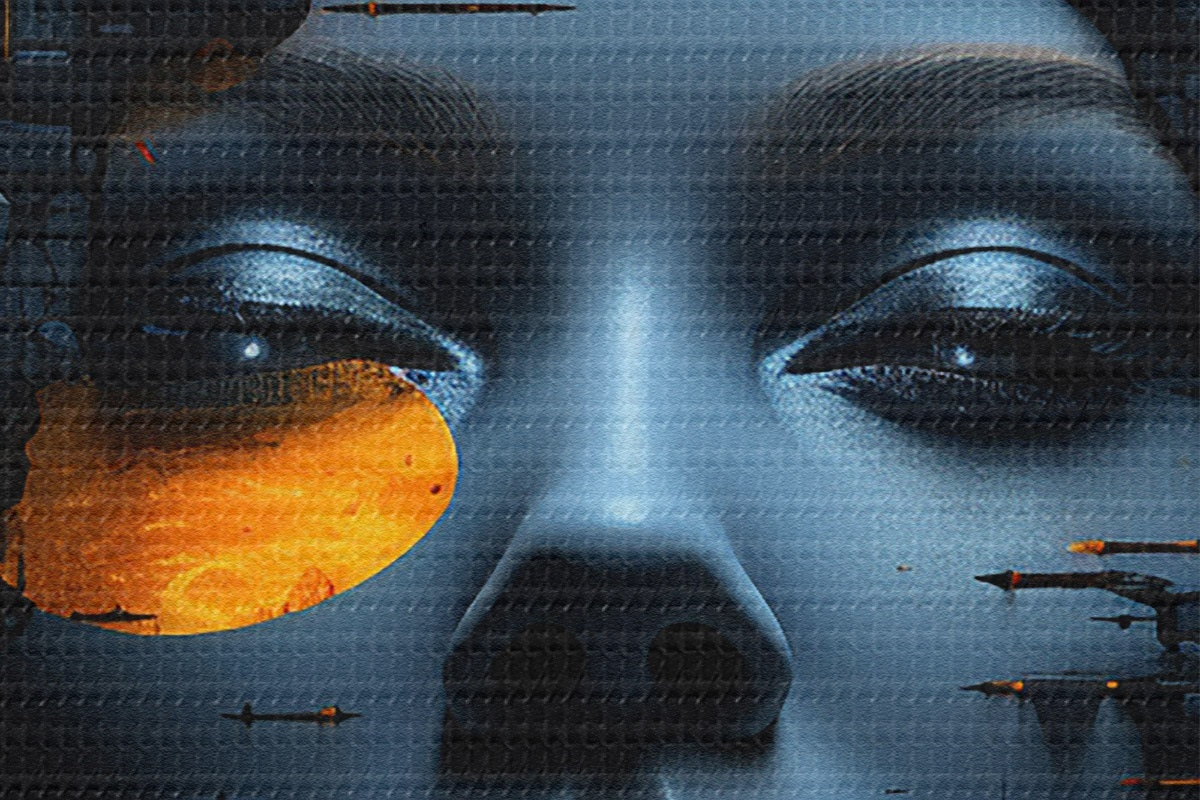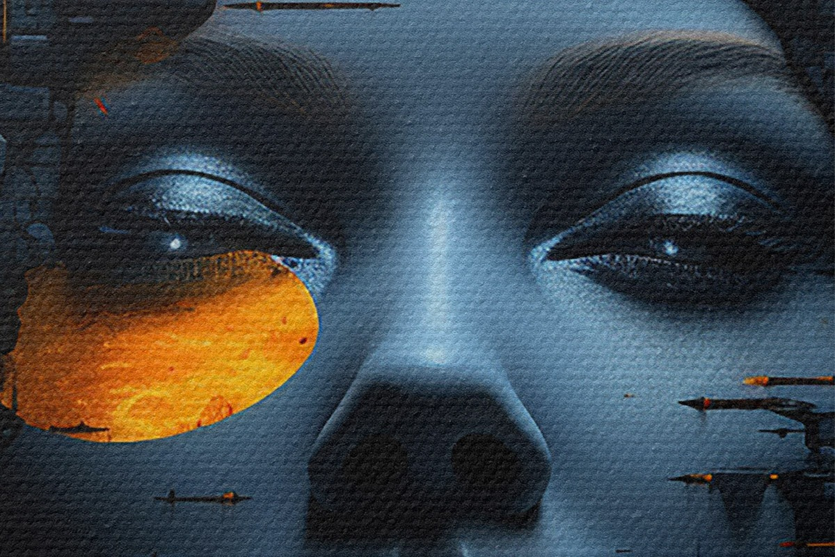 Attēls Cilvēki, meitenes seja uz pilsētas fona, abstrakts Nr r45341