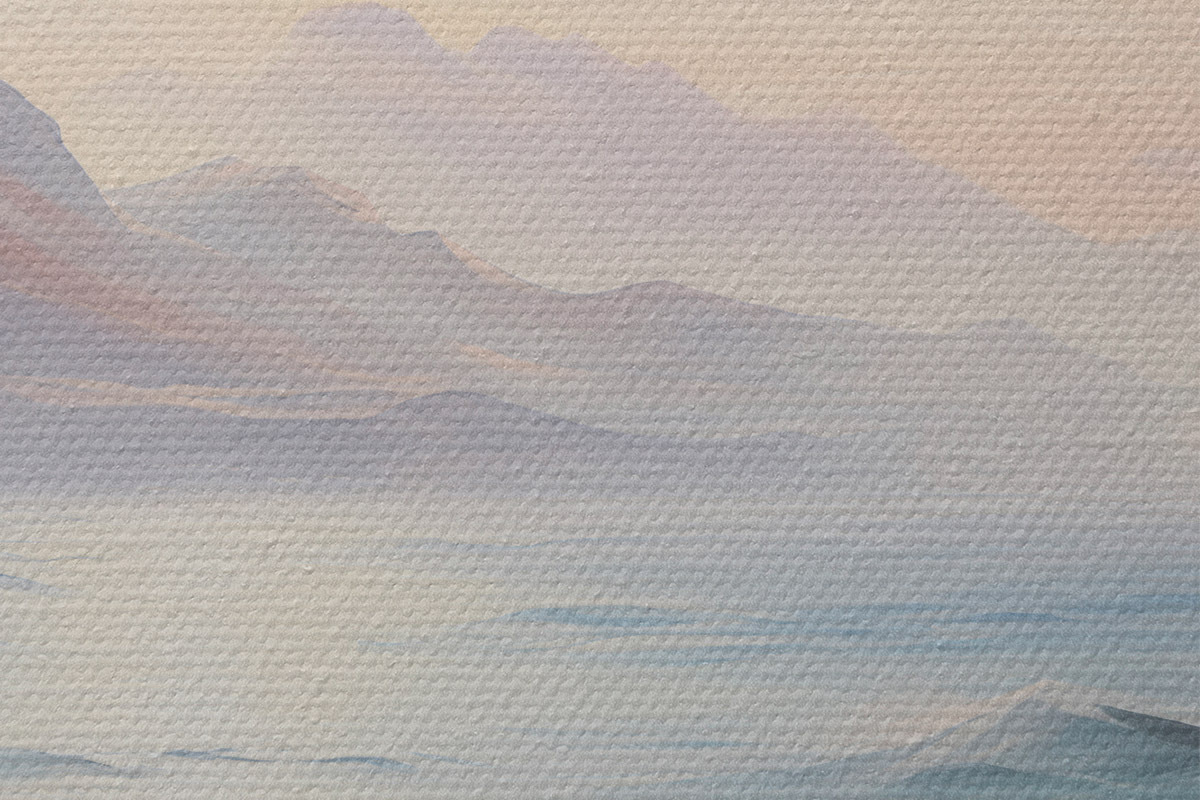 Smalkais diegu pinums uz šī audekla atgādina profesionālu mākslinieku audeklu virsmu.