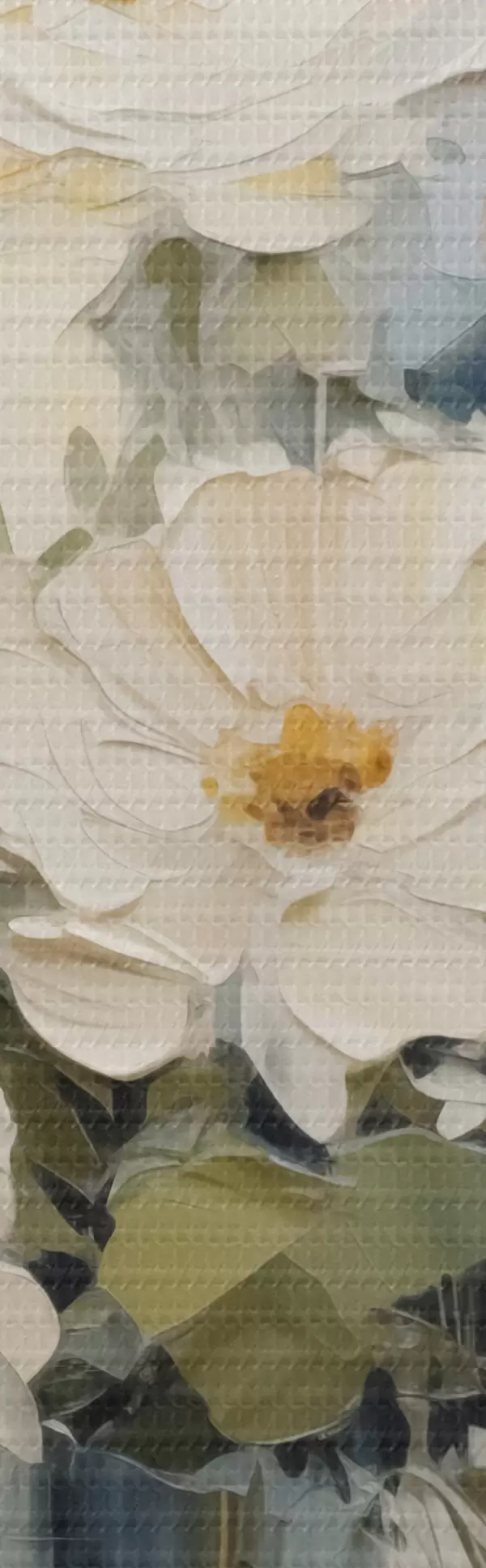 Smalkais diegu pinums uz šī audekla atgādina profesionālu mākslinieku audeklu virsmu.