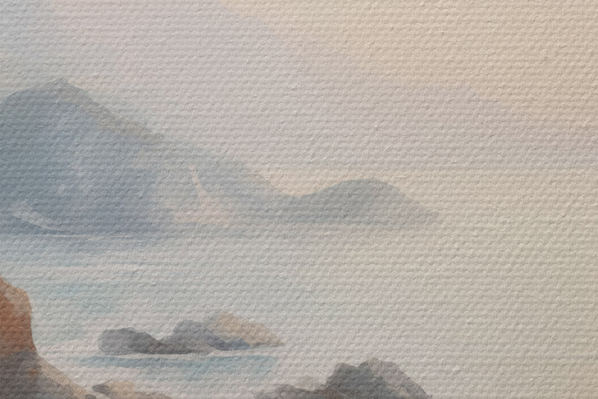 Smalkais diegu pinums uz šī audekla atgādina profesionālu mākslinieku audeklu virsmu.