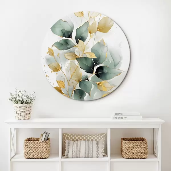 Apaļas gleznas Abstrakts zars ar lapām r45366