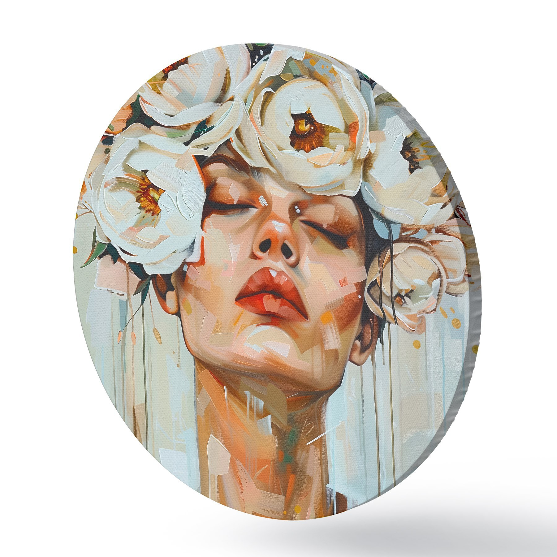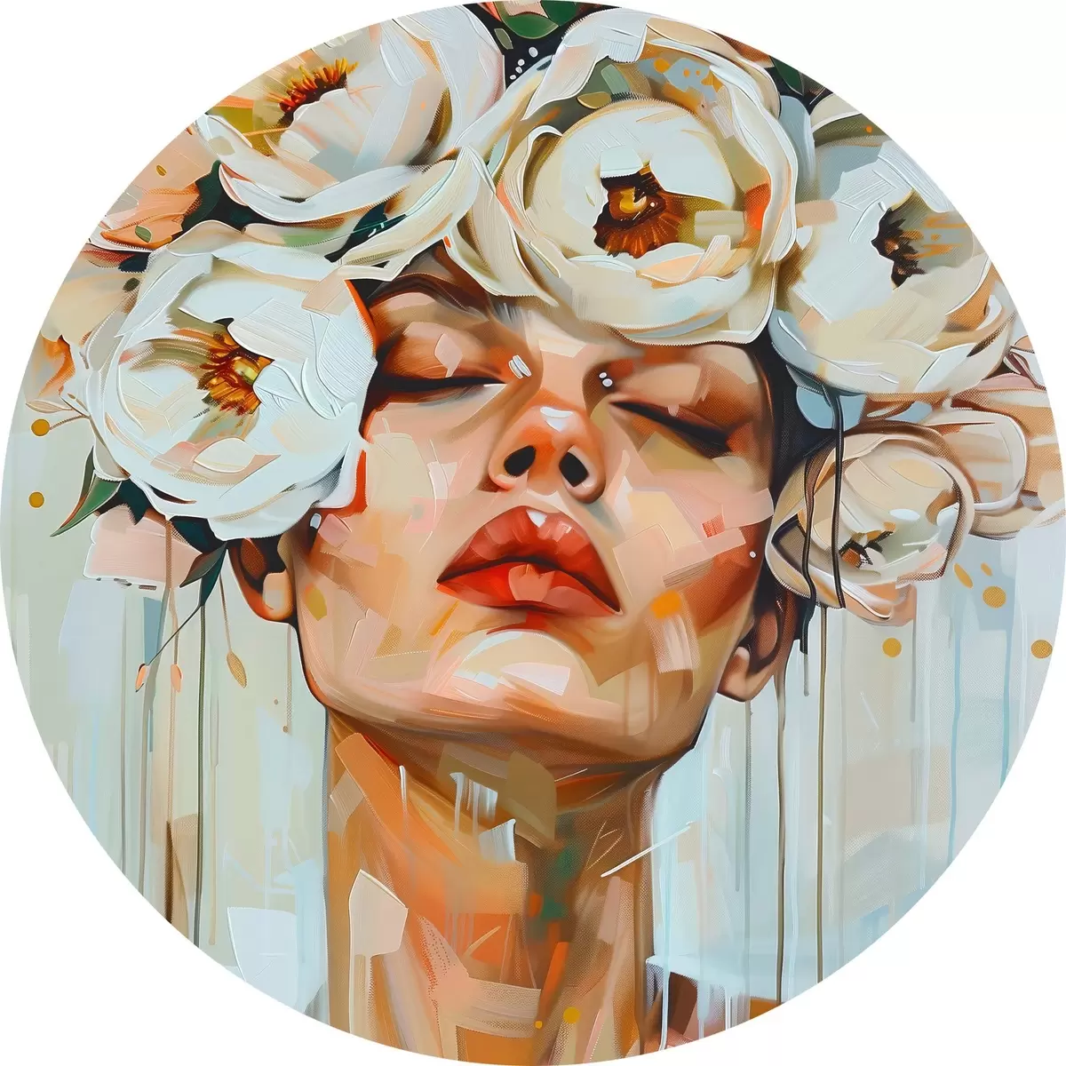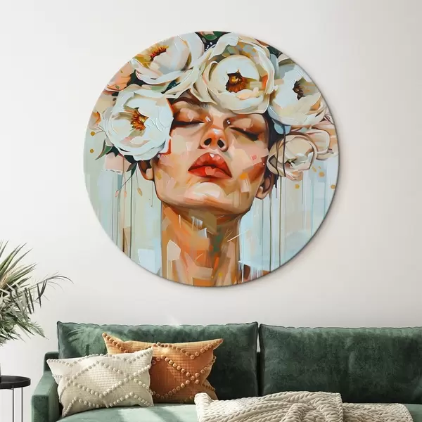 Apaļas gleznas Sievietes portrets ar ziediem r45370