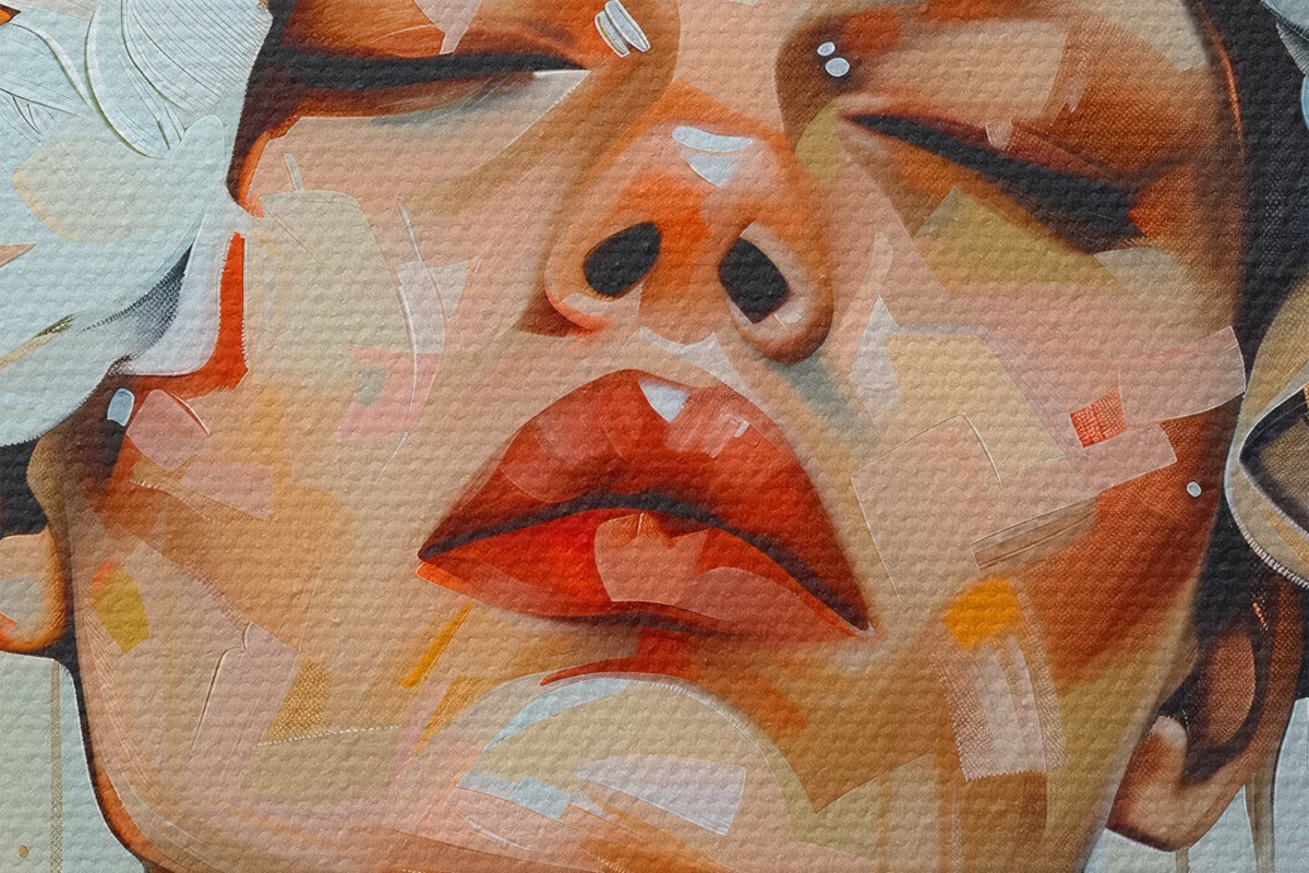 Smalkais diegu pinums uz šī audekla atgādina profesionālu mākslinieku audeklu virsmu.