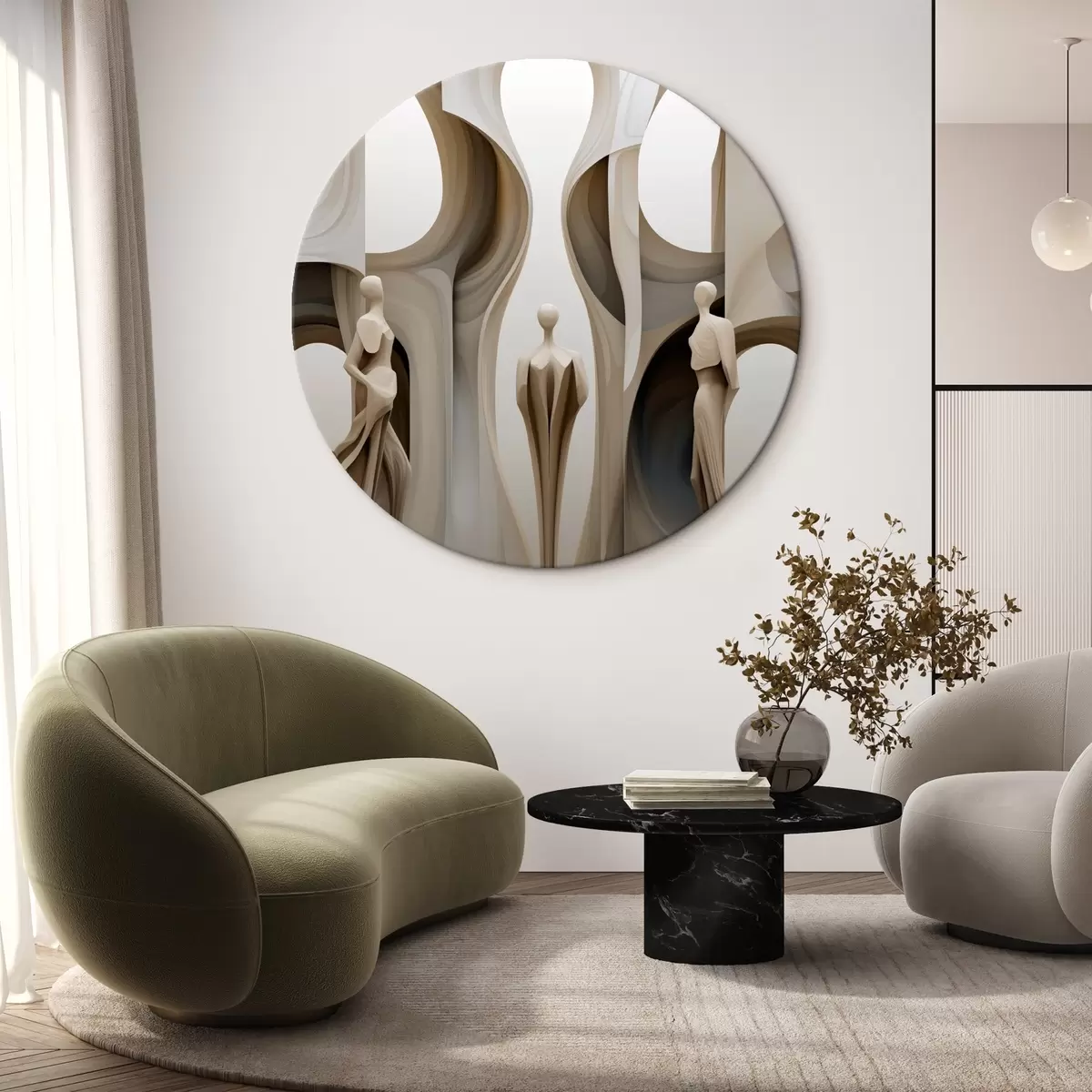 Apaļas gleznas Abstrakcija ar siluetiem r45371