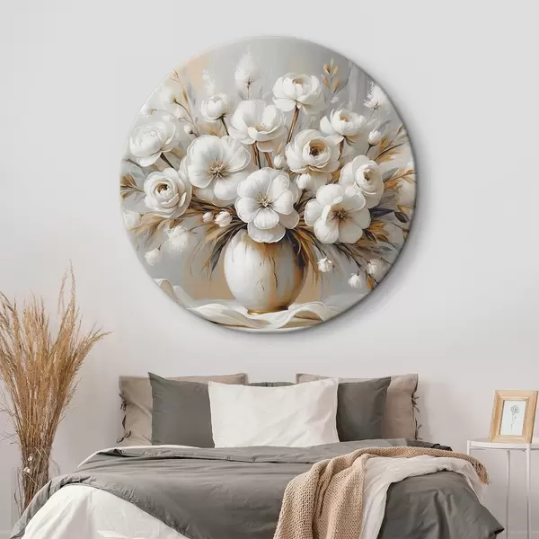 Apaļas gleznas Smalks ziedu pušķis vāzē r45375