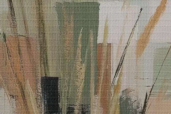 Smalkais diegu pinums uz šī audekla atgādina profesionālu mākslinieku audeklu virsmu.
